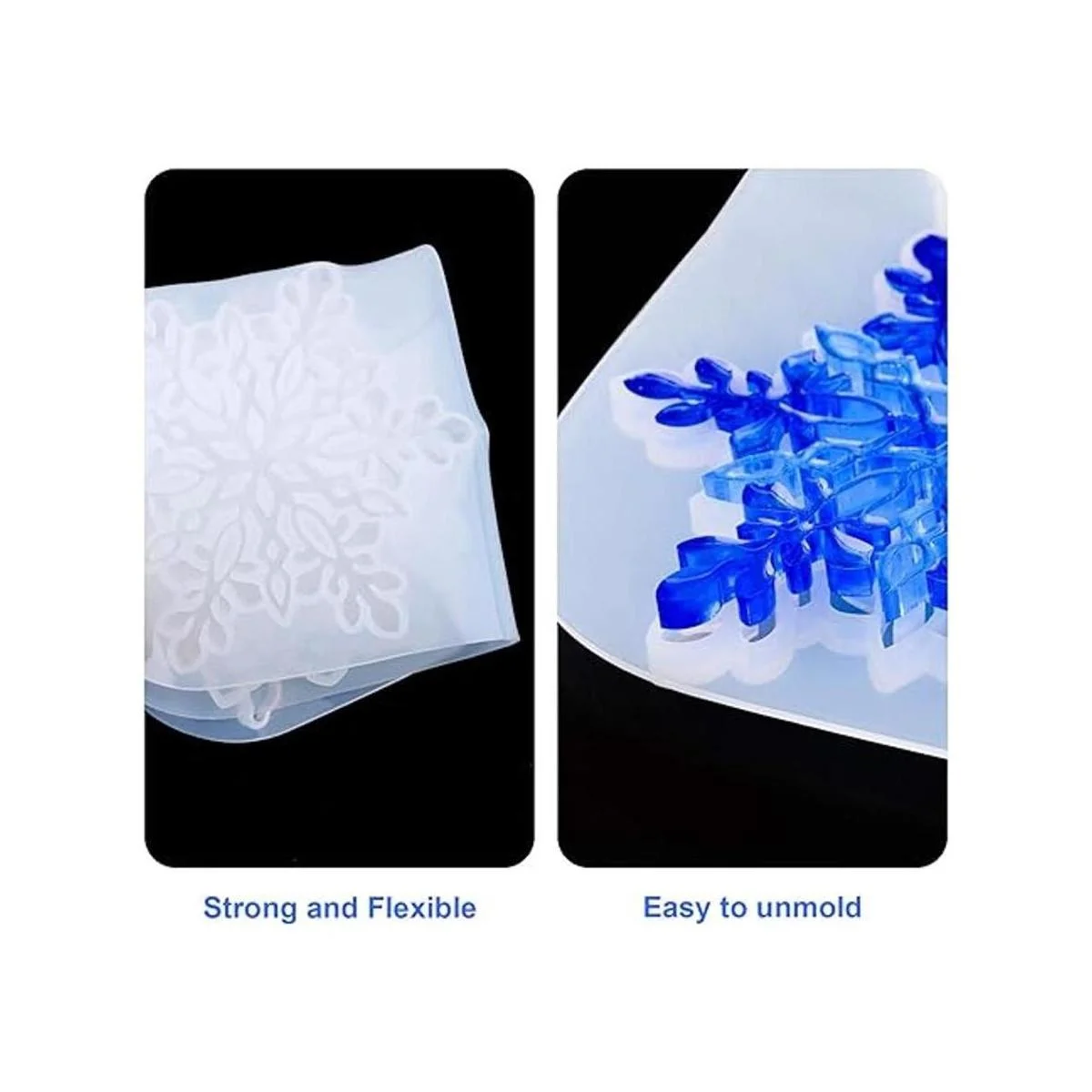DIY Art Casting La artesanía de resina es divertida y fácil para que todos produzcan artículos decorativos y funcionales. Añade adornos como purpurina, cuentas, diamantes de imitación, lentejuelas, flores secas o mezcla la resina con pintura, micas, esencia, pigmentos normales o brillantes para hacer que tu obra de arte sea aún más única. La bandeja grande mide 8.071 x 9.055 x 0.256 in y el copo de nieve mide 4.173 x 4.173 x 0.256 in. El mejor tamaño para tu pieza hecha a mano personalizada para sostener y organizar tazas, joyas, postres o artículos de decoración, mostrando tu gusto estético.