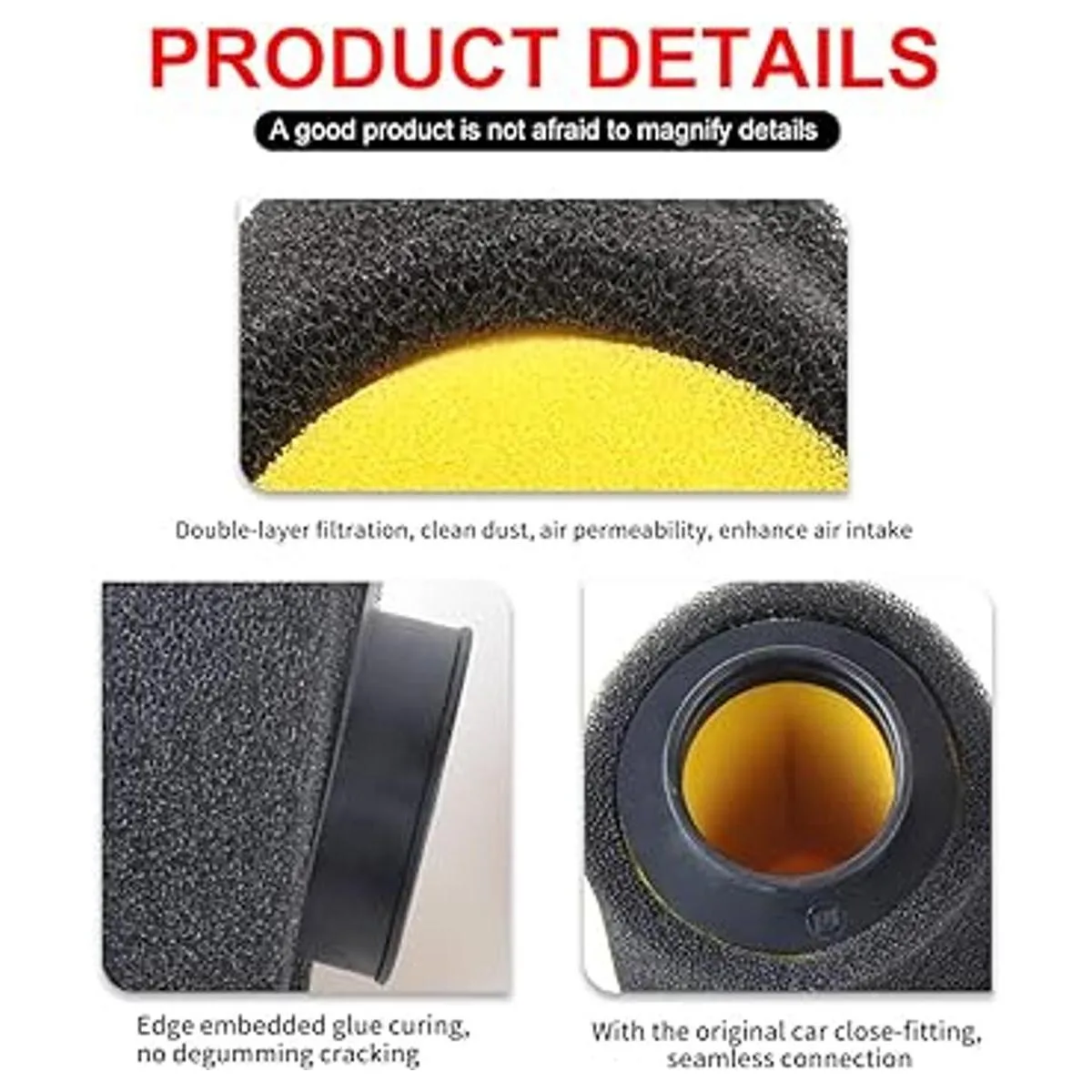 Alto rendimiento: diseñado para aumentar la entrada de aire y la aceleración. El diseño de espuma mejora el proceso de filtración. Mejora la respuesta del acelerador, añade más potencia 5 8 hp