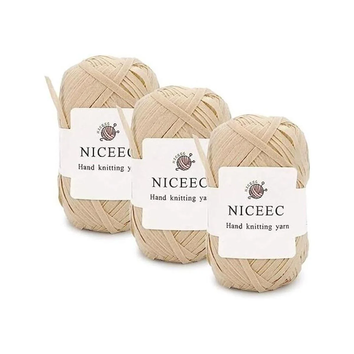 NICEEC Hilo de papel kraft de 3 madejas, hilo de rafia, hilo de poliéster suave para tejido de ganchillo, longitud total 145 x 3 158 yds3, 50 g3, beige