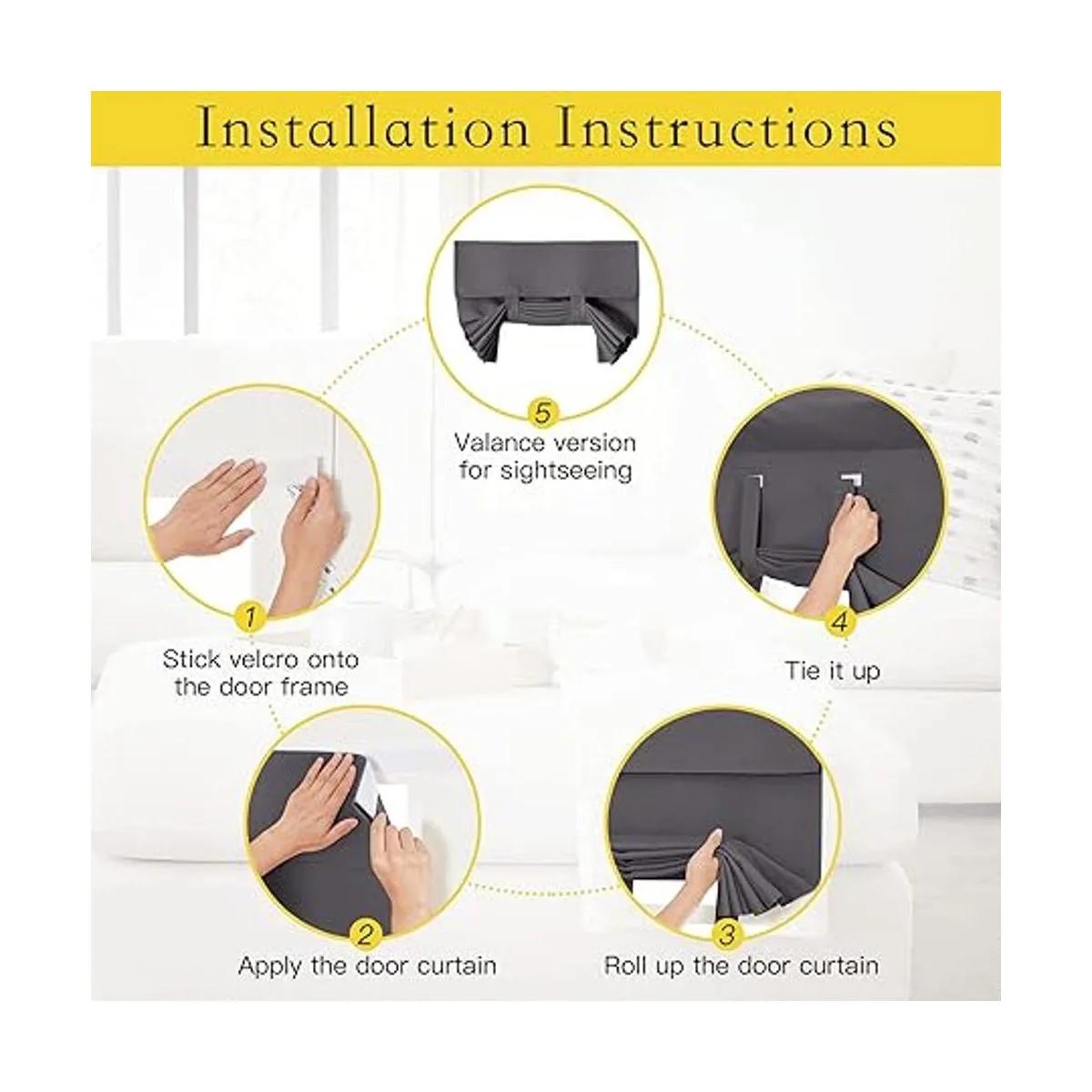 Bien hecho: el paquete incluye 1 cortina de puerta de panel correa adhesiva gratis. La cortina de puerta está acabada con adhesivo para una fácil instalación. La parte posterior de la cortina de la puerta también está diseñada con un bolsillo para barra/barra, para satisfacer tus diversas necesidades.