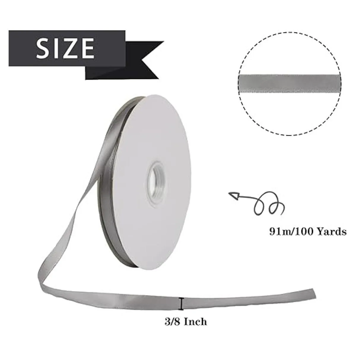 Nichemigo Cinta de satén de 100 yardas, 38 pulgadas, color gris plateado, cinta de poliéster de una sola cara, para envolver regalos, lazos para el cabello, flores y manualidades