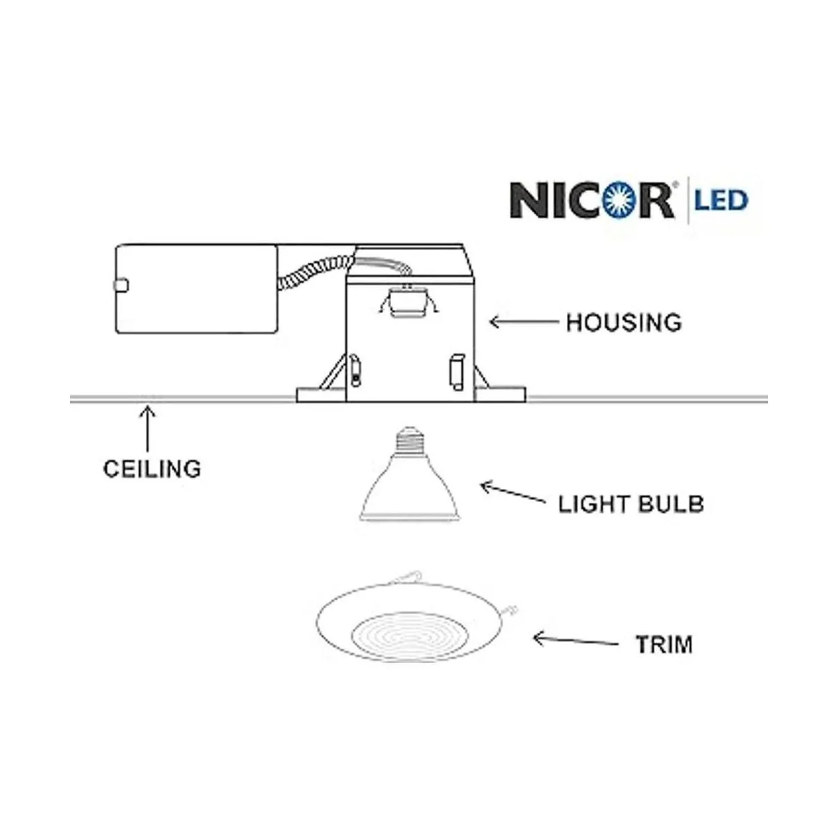 NICOR Lighting Recorte de ducha empotrado blanco de 6 pulgadas con lente Fresnel de vidrio 17502