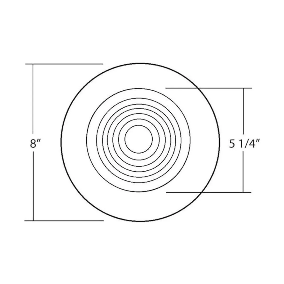 El borde mide 8 pulgadas de diámetro con una apertura de 5.25 pulgadas