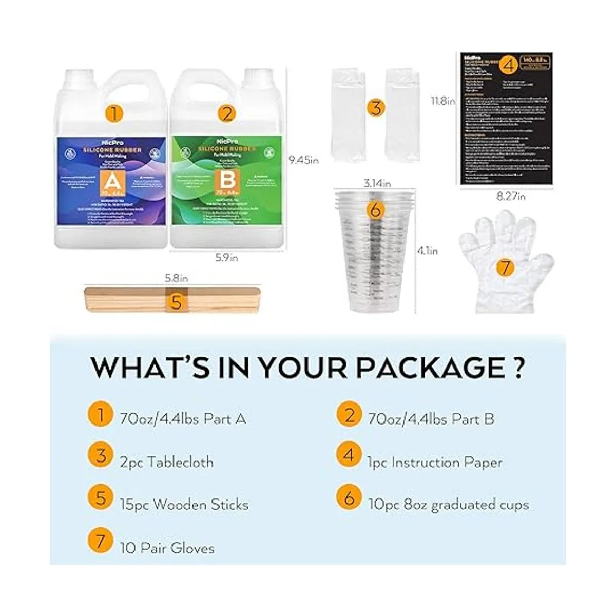 Nicpro Kit de fabricación de moldes de silicona de 15 A, 8.8 libras 140 onzas, fabricación de moldes de goma de silicona translúcida 3D, fuerte y seguro para alimentos para fundición de resina, jabón, velas, arcilla, moldes de silicona DIY con guantes, palos y tazas