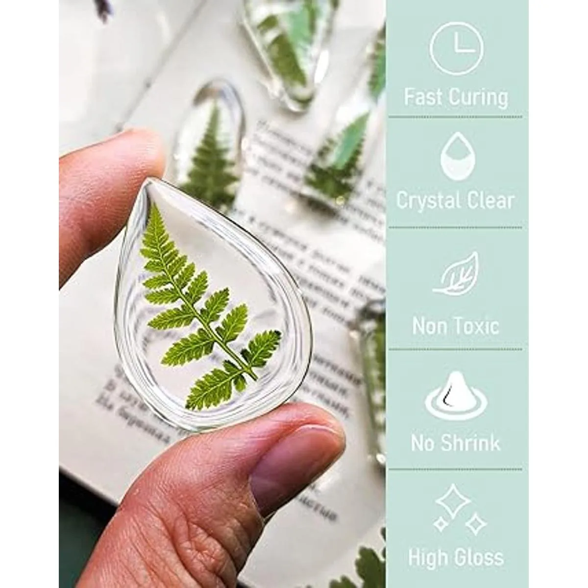 Amplia aplicación: esta resina UV transparente tiene una viscosidad de 30004000 cps, dureza de hasta 90D después del secado. Perfectamente formulado para ser mezclado con polvo de mica, pigmento y copos de aluminio para un resultado vívido e impresionante, se puede utilizar para proyectos de manualidades y fabricación de joyas, como llaveros, insignias, pines, aretes, anillos, colgantes, etc.