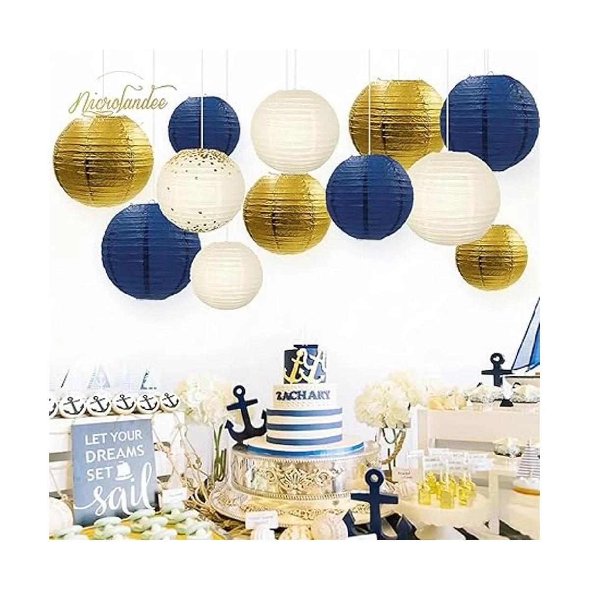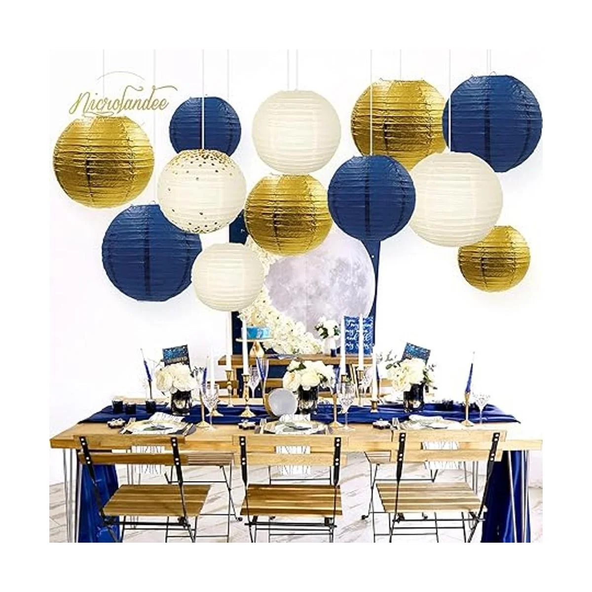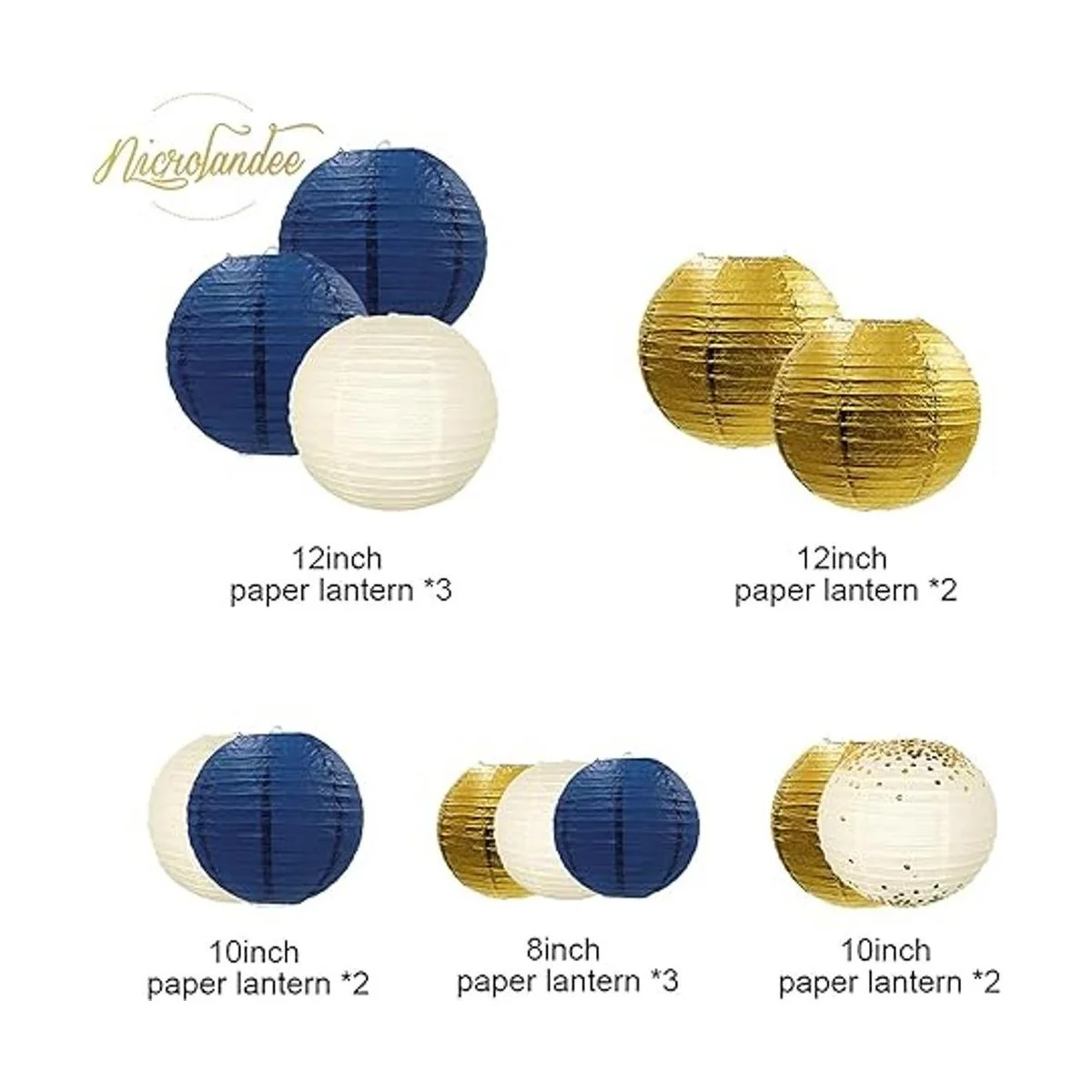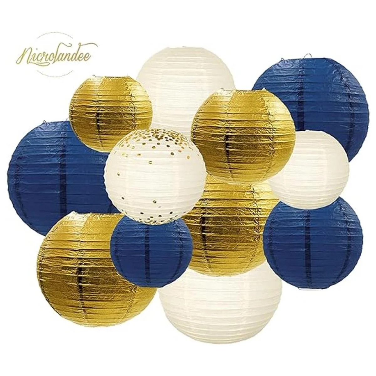 NICROLANDEE Decoraciones de fiesta azul marino 12 linternas de papel para colgar en color azul marino con purpurina para cumpleaños, baby shower, despedida de soltera, boda, compromiso, despedida de soltera, suministros para fiestas de género
