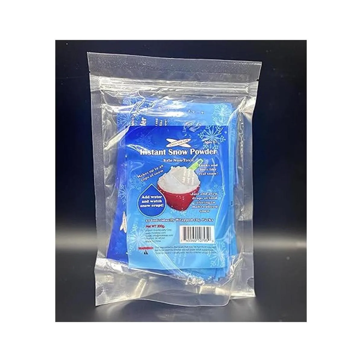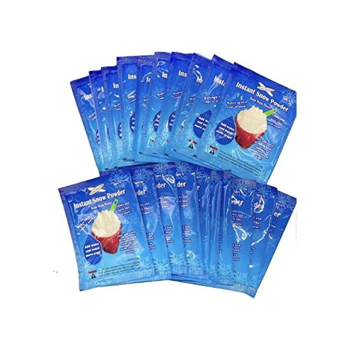 Paquete de 20 10 g/paquete de nieve instantánea de alta calidadScience Gone Fun Tm reutilizable. No Tóxico. Hará alrededor de 80 tazas de nieve esponjosa al instante.