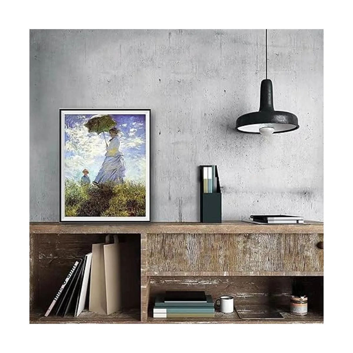 Monet Mujer con sombrilla pintada en 1875. En la pintura, Camille sostiene una sombrilla verde y se mantiene contra la luz. Kits de pintura de diamante para adultos 100 lienzo de alta calidad, a prueba de humedad, duradero, las cuentas no se caen fácilmente, es el paquete de arte perfecto para bricolaje.