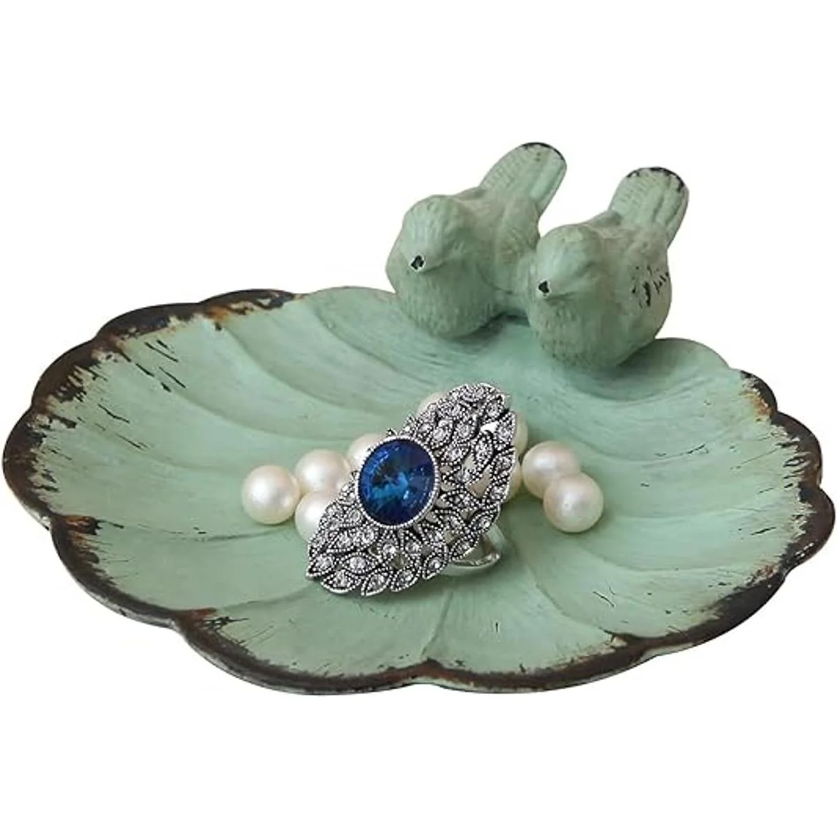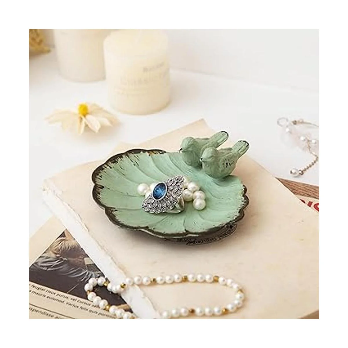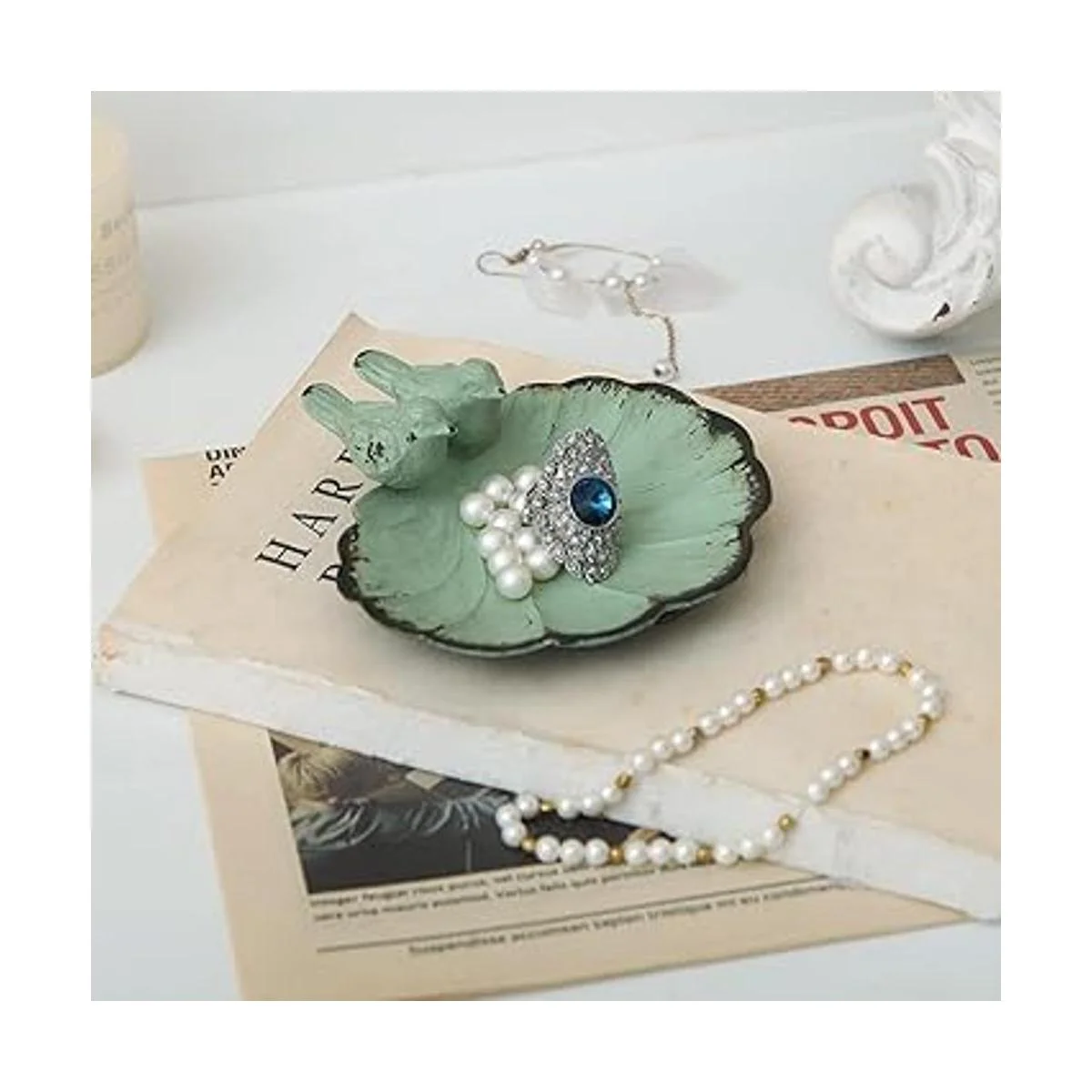 RETRO DESIGN The shabby chic bird with leaf dish is not only a functional jewelry holder but also an exquisite artwork. The decorative bird statue with a retro design is an easy match with any home style and decorating your home or office, bathroom, bedroom, vanity, and kitchen.