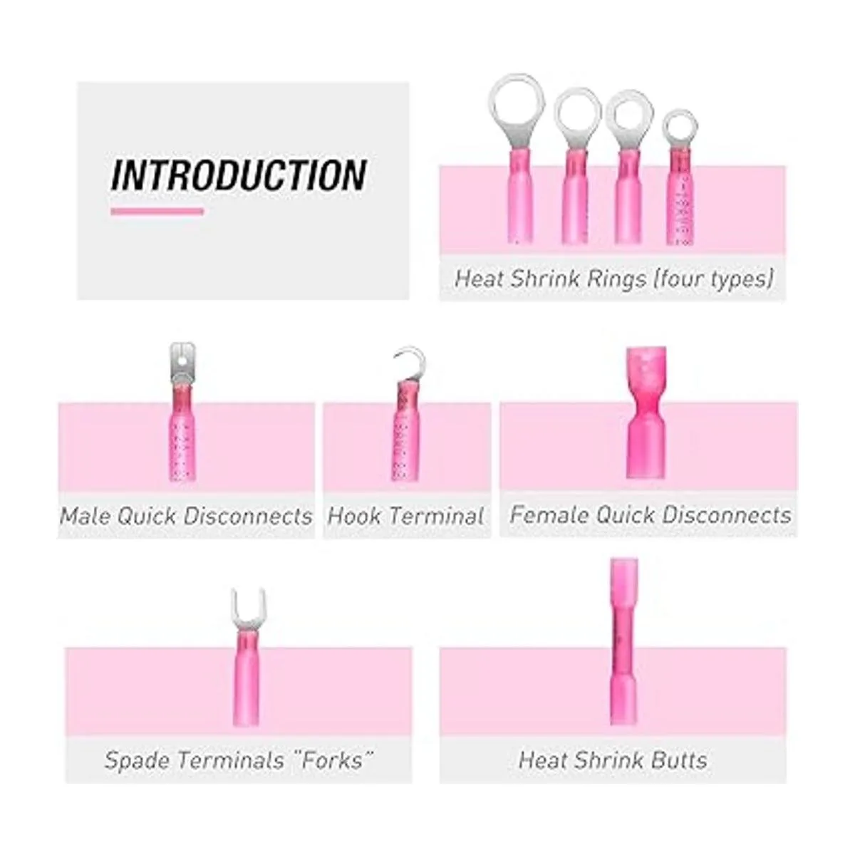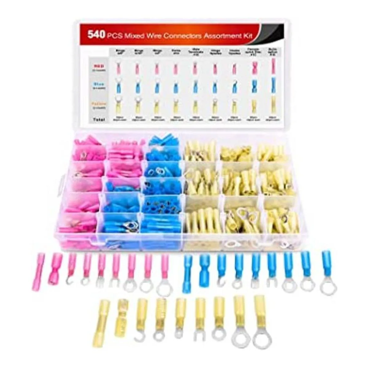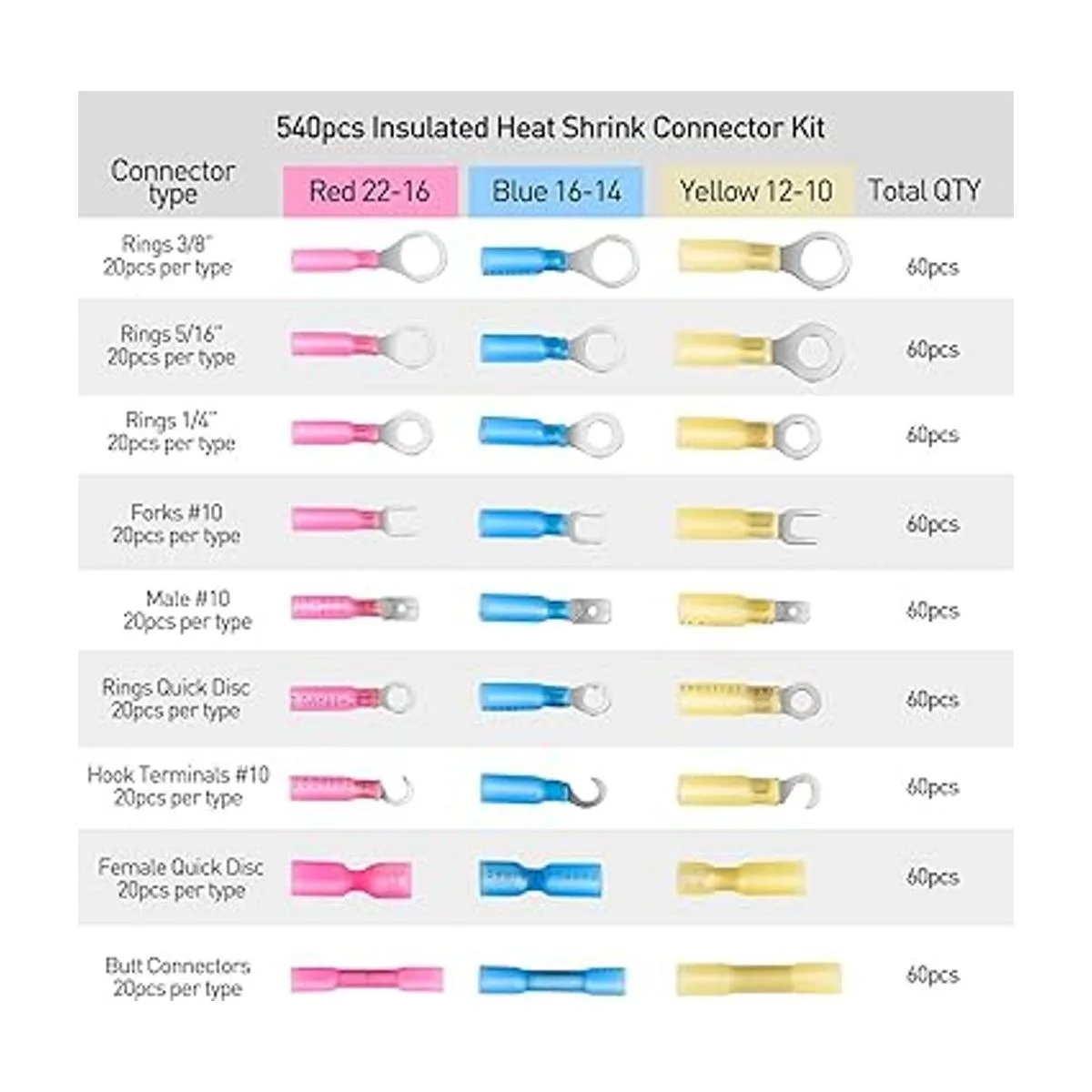 Nilight 540 conectores de alambre termorretráctiles impermeables, kit de terminales eléctricos marinos, anillo, tenedor, pala, empalmes de tope, 2 años de garantía