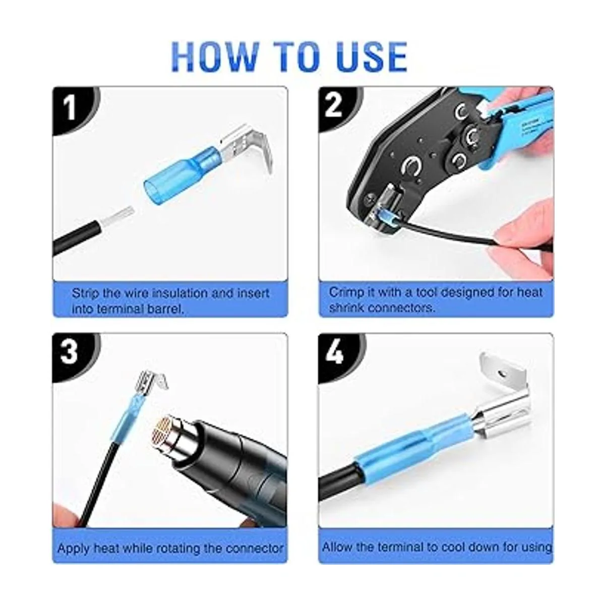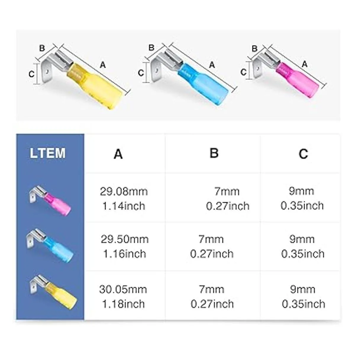 Terminales de alta calidad: conector de terminal de crimpado aislado de alta calidad. Escala hasta 1/3 del tamaño original. El adhesivo activado por calor sella la conexión al elemento. Tus cables no se deslizan.