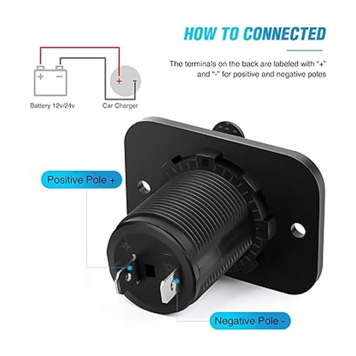 Se monta con una tuerca de retención, no un ajuste de presión que puede vibrar suelto. Se puede utilizar con un tapón de bloqueo. Fácil de instalar, en el polo positivo. al polo negativo.