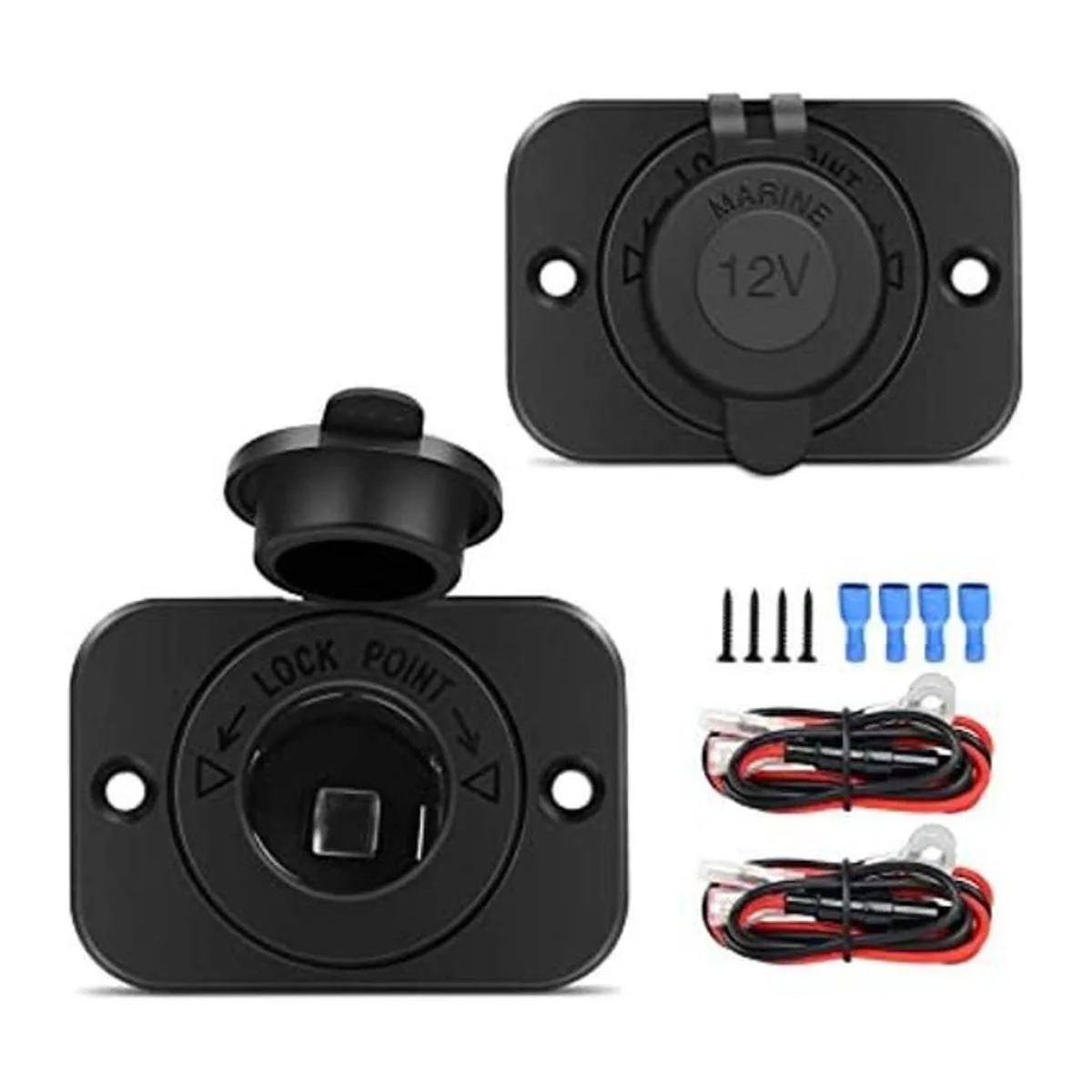 Nilight Juego de 2 enchufes para encendedor de cigarrillos de coche, CC, 12 V, impermeable, adaptador de salida de corriente de repuesto con terminales cables y tornillos para barco marino, motocicleta, barco, coche, camión, RV, ATV, 2 años de garantía
