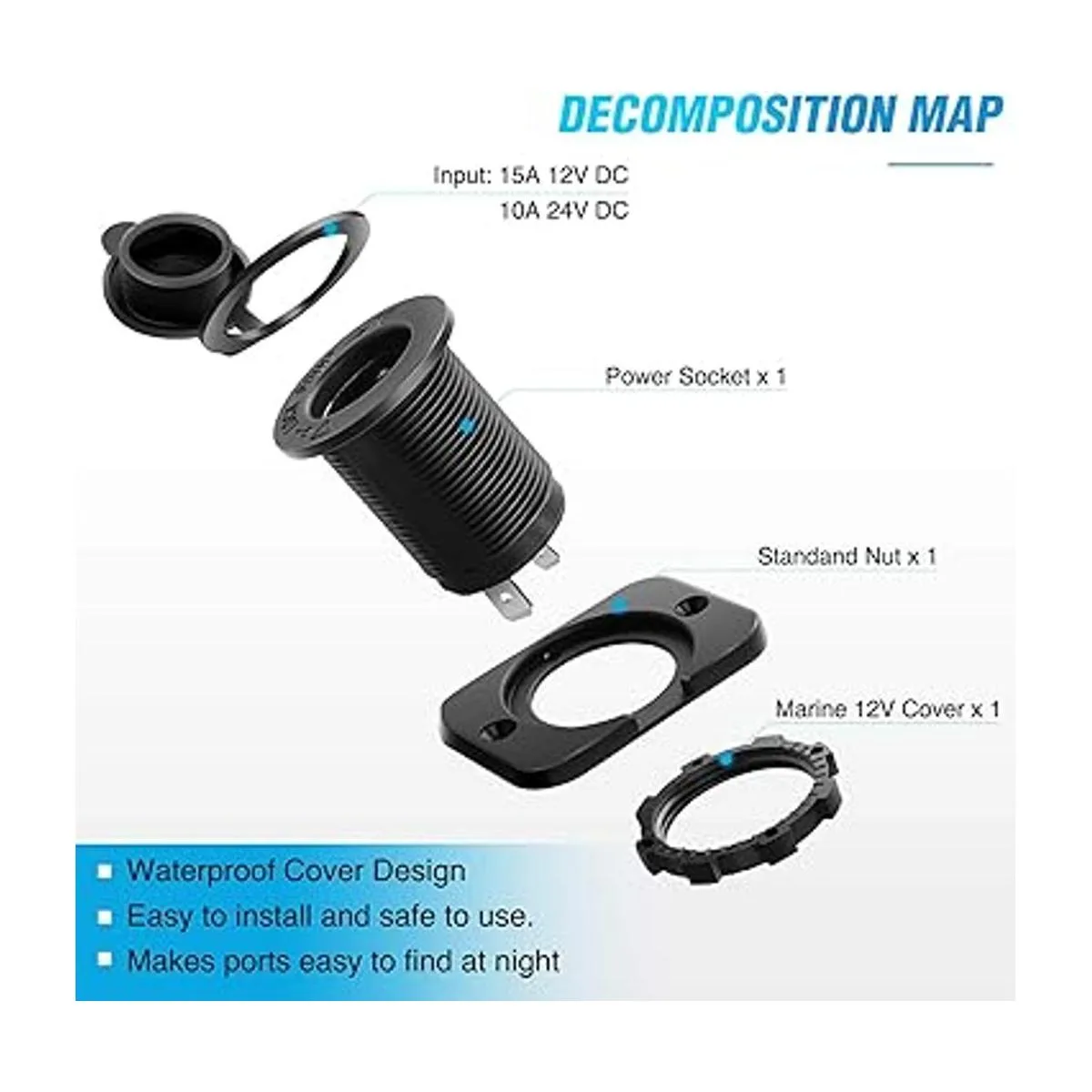 Funciona con cualquier enchufe de encendedor de cigarrillos estándar y apto para cualquier vehículo de 12 V a 24 V motocicleta, barco, camión, ATV, RV que necesite enchufes de encendedor de cigarrillos extra y resistentes.