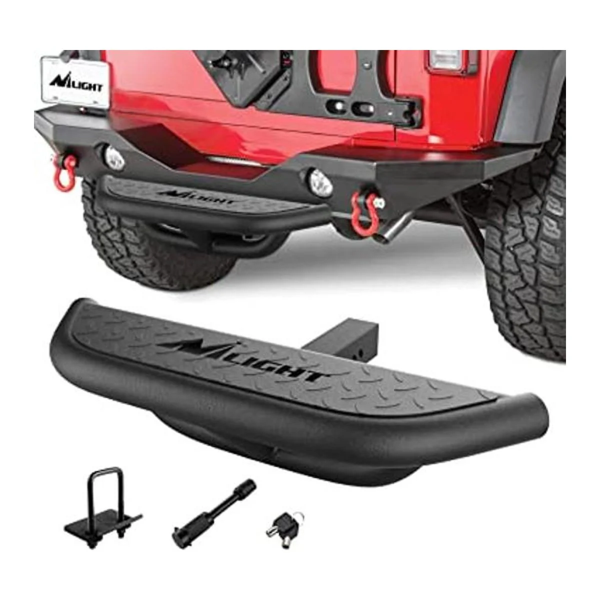 Nilight Paso de enganche con receptor de enganche de 2 pulgadas, protector de parachoques trasero compatible con vehículos de automóvil, camiones, vehículos mejorados, barra de enganche negra texturizada con bloqueo de enganche y estabilización de pernos en U, 2 años de garantía