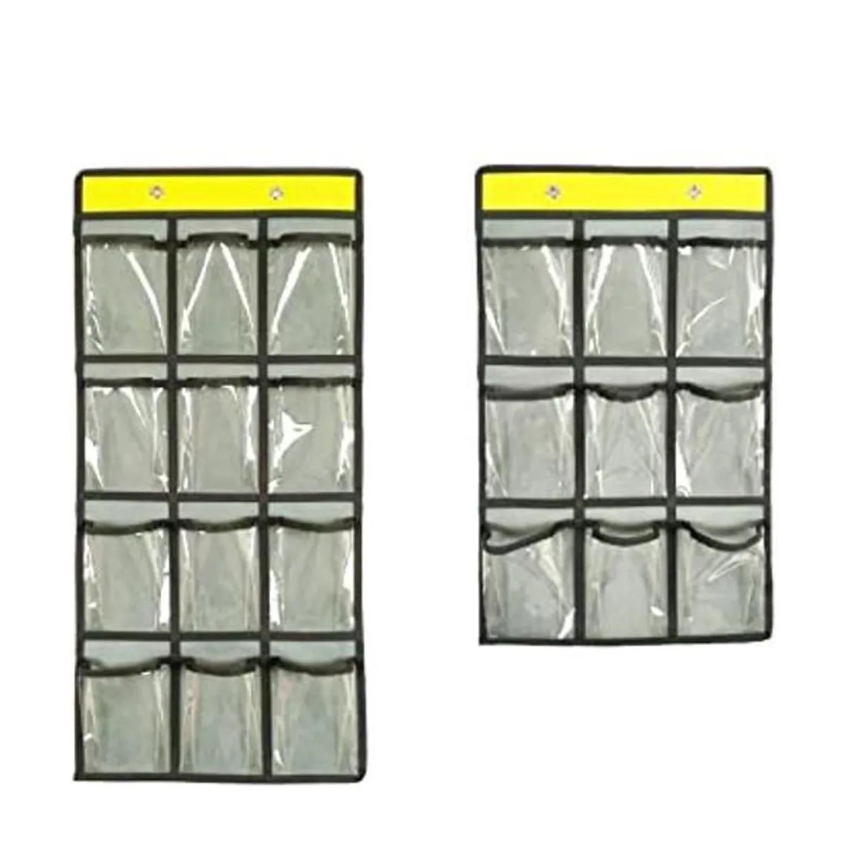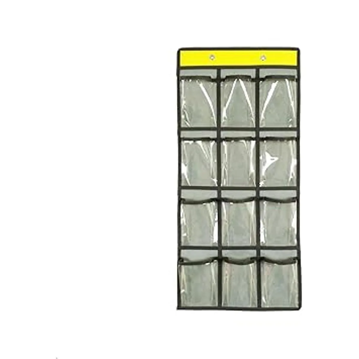 NIMES Ropa interior colgante para armario, calcetines de almacenamiento de joyas sobre la puerta, aula, teléfono celular, calculadora organizadora con bolsillos transparentes gris, paquete de 12 y 9 bolsillos