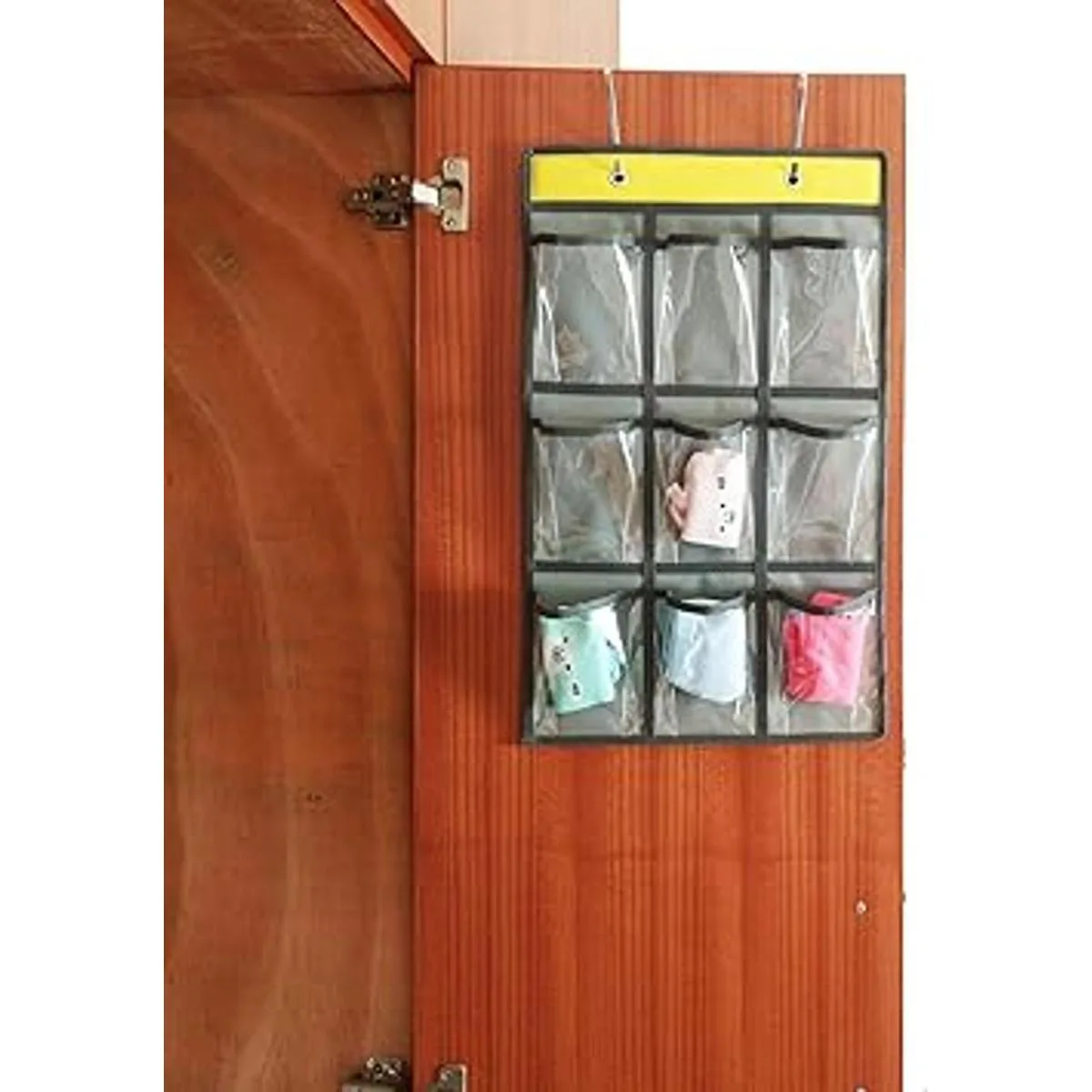 NIMES Ropa interior colgante para armario, calcetines de almacenamiento de joyas sobre la puerta, aula, teléfono celular, calculadora organizadora con bolsillos transparentes (gris, paquete de 12 y 9 bolsillos)