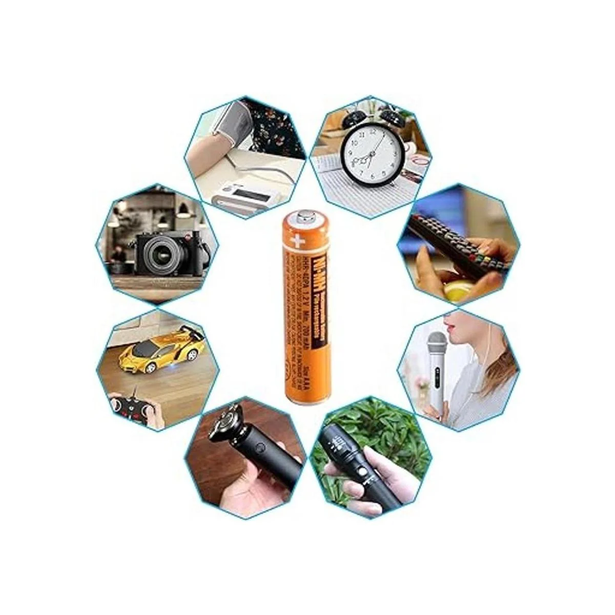 Seguridad del material: las baterías NiMH están hechas de materiales más respetuosos con el medio ambiente que las baterías tradicionales, y no contienen Hg/Cd/pb, lo que es importante para reducir la contaminación de metales pesados y más adecuado para un uso generalizado en productos electrónicos diarios.