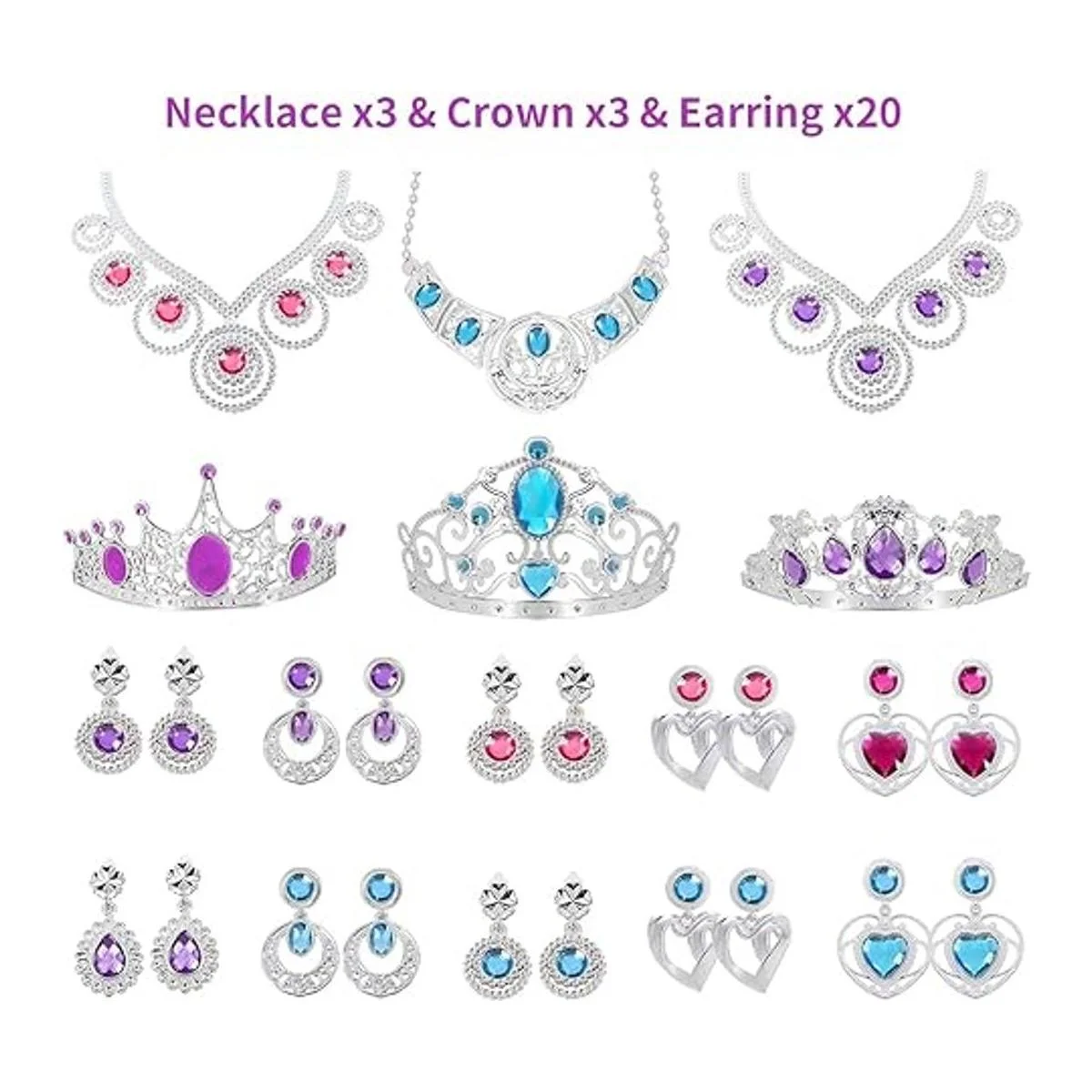 NINAOR Paquete de 56 joyas de princesa para niñas, accesorios de vestir de princesa para niños, joyas de juego para niñas, incluidas corona, varita, collar, pulseras, aretes, ideales como decoración de fiesta de princesa