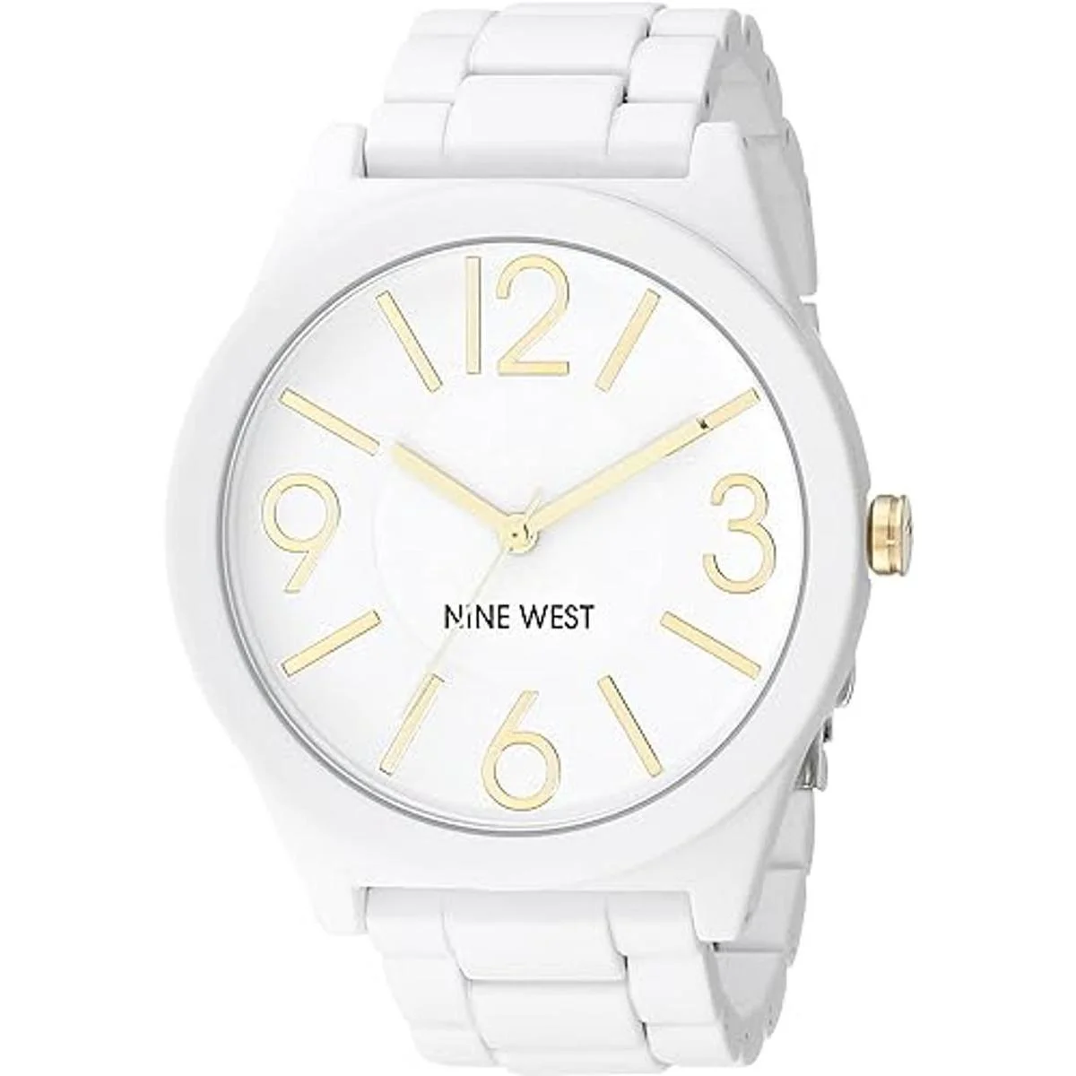 Nine West Reloj pulsera de goma blanco mate NW1678WTWT para mujer, blancodorado