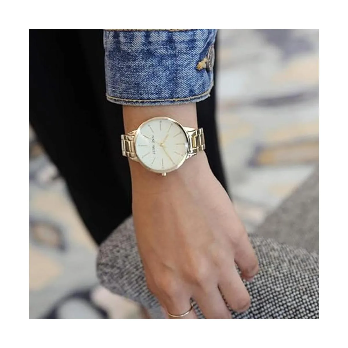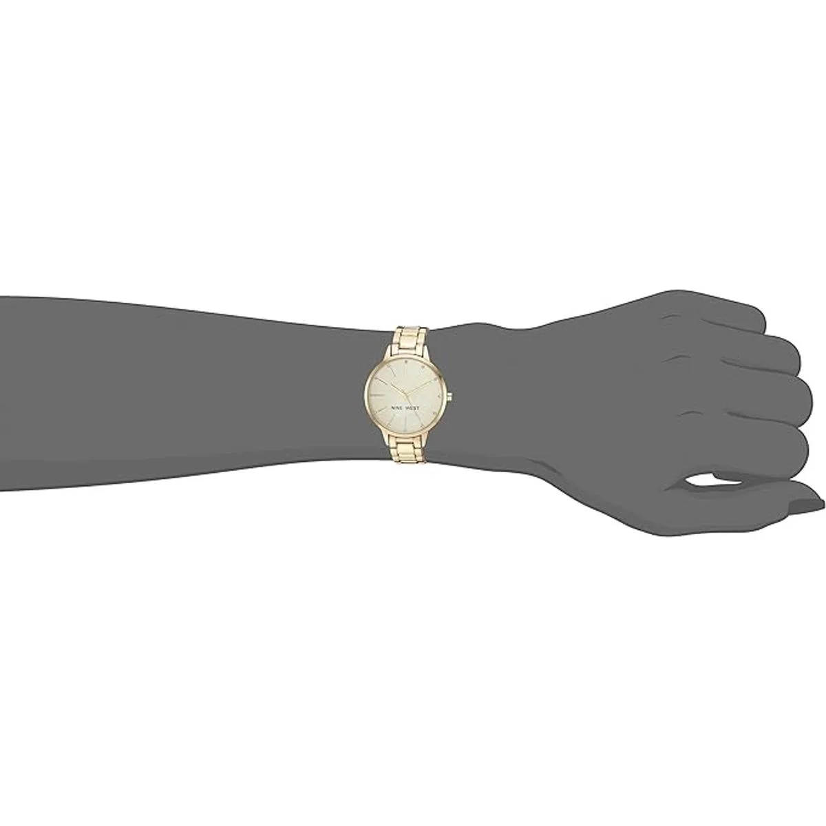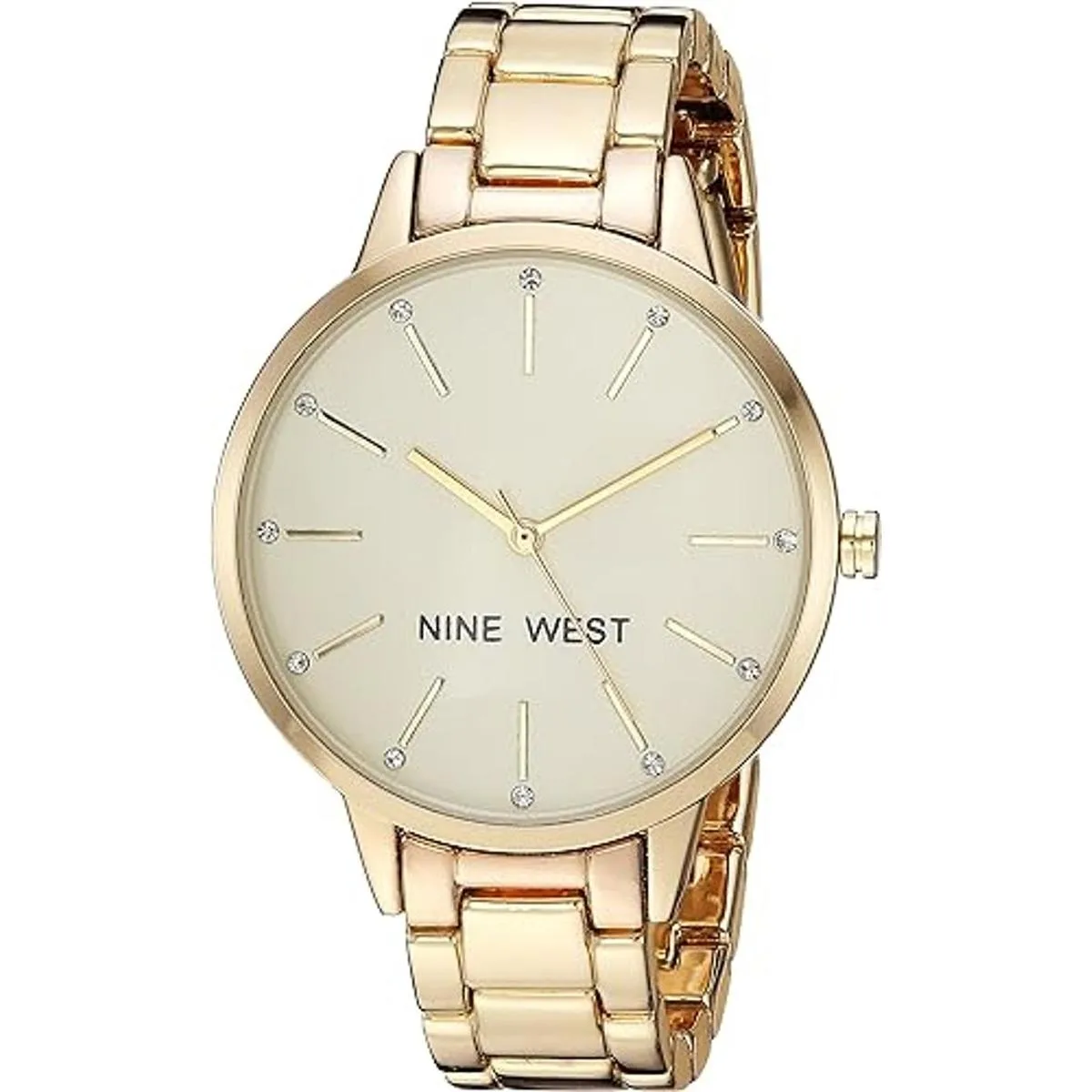 Lente de cristal mineral abovedado; esfera de champán claro con manecillas doradas y marcadores acentuados con cristal