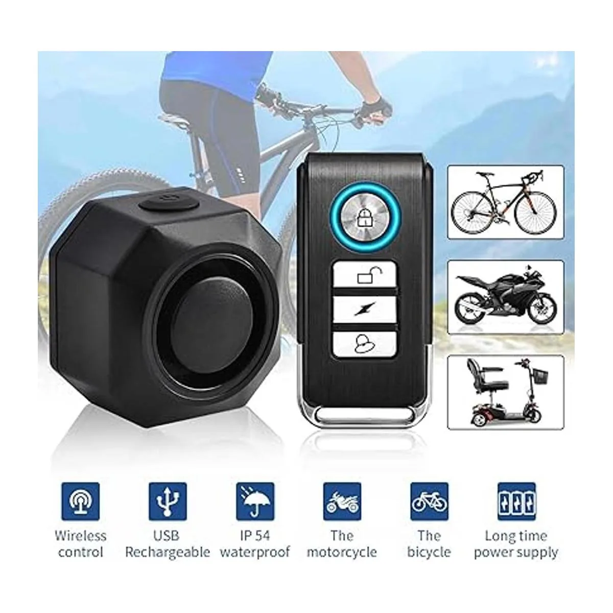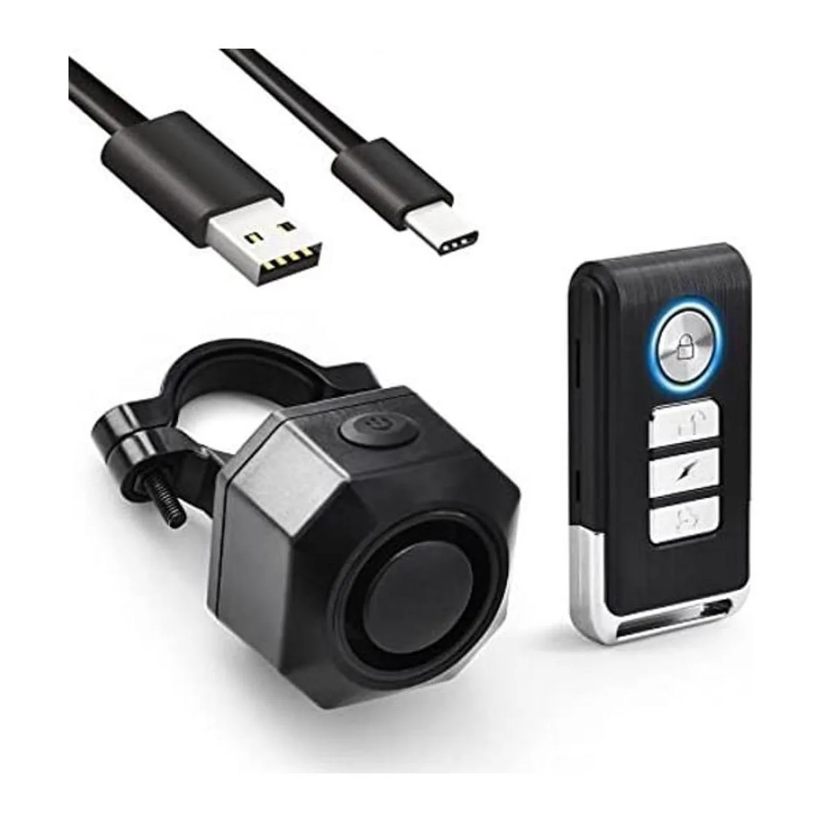NineLeaf Alarma antirrobo para bicicleta con soporte, recargable por USB C de 110 dB, vibración antirrobo, motocicleta, alarma, sistema de seguridad, impermeable, para ciclo, movilidad, scooter con control remoto
