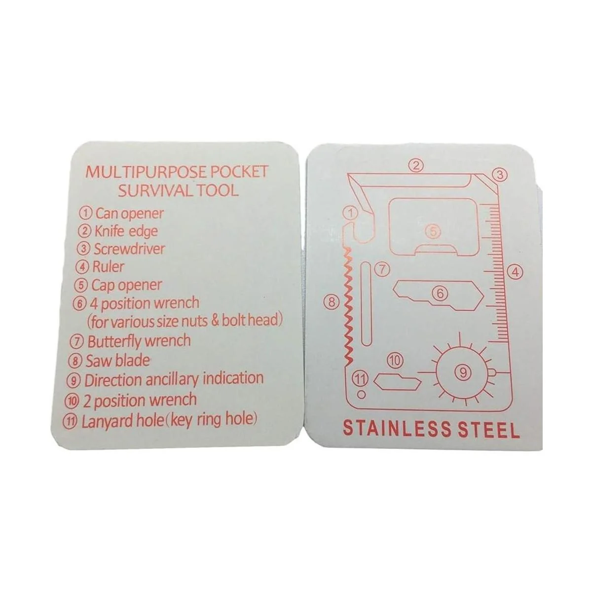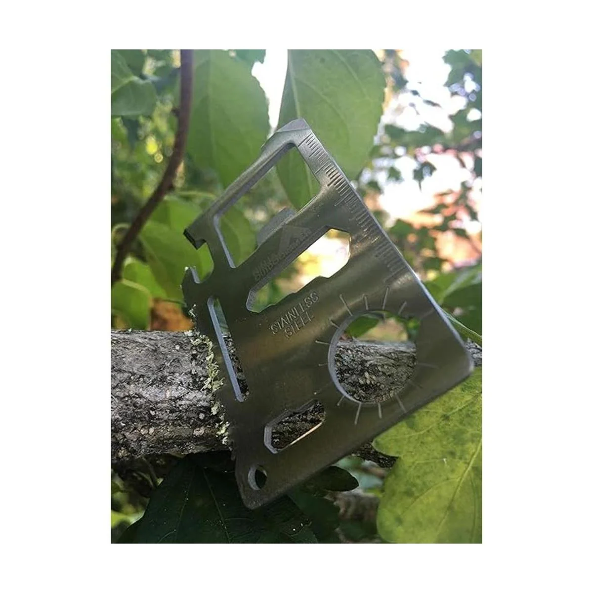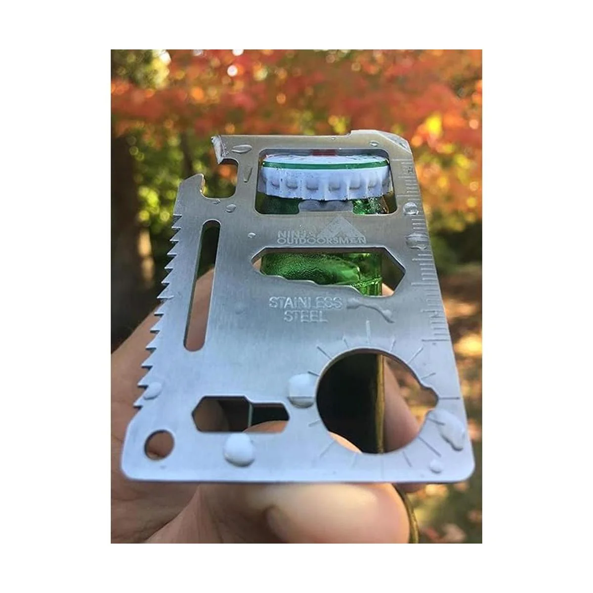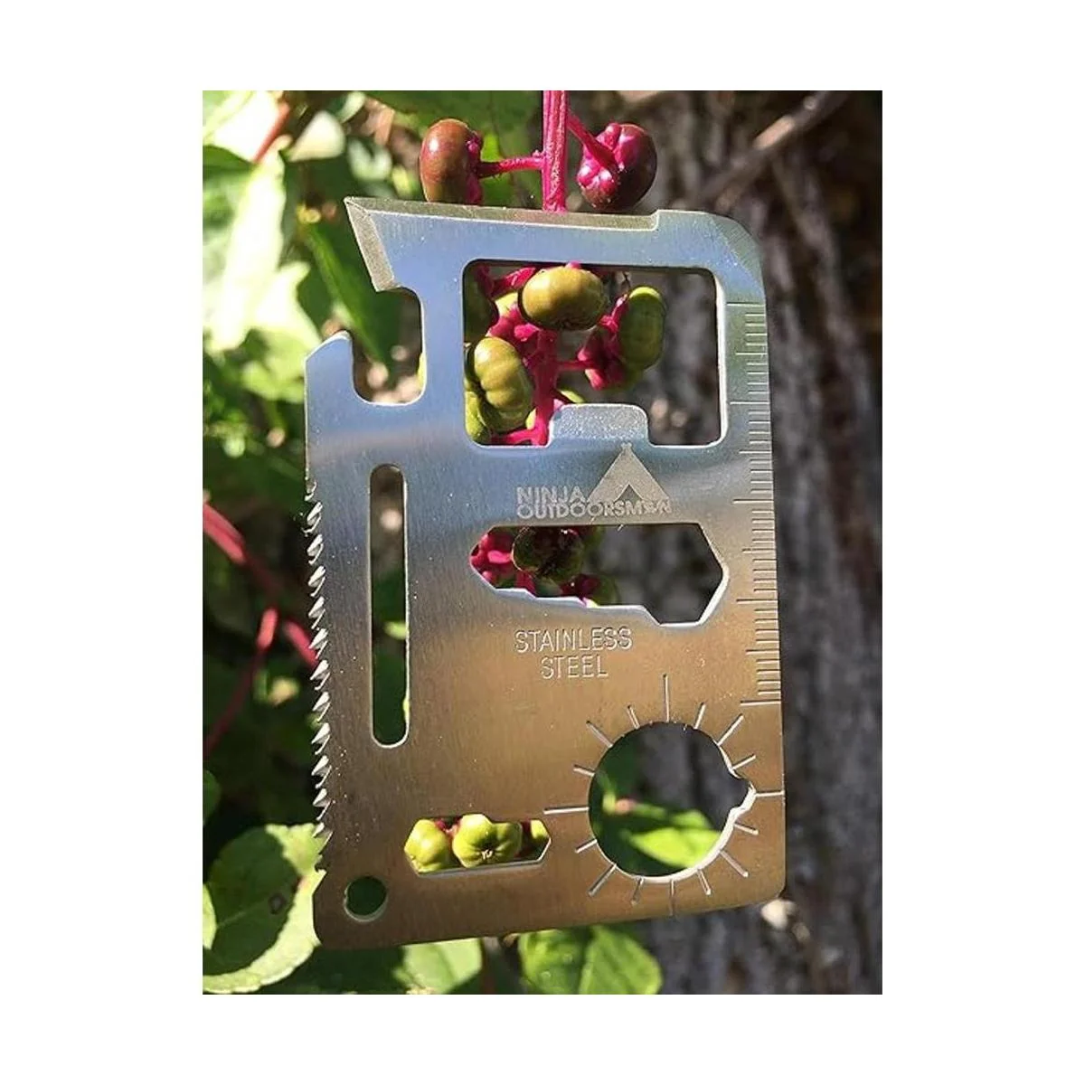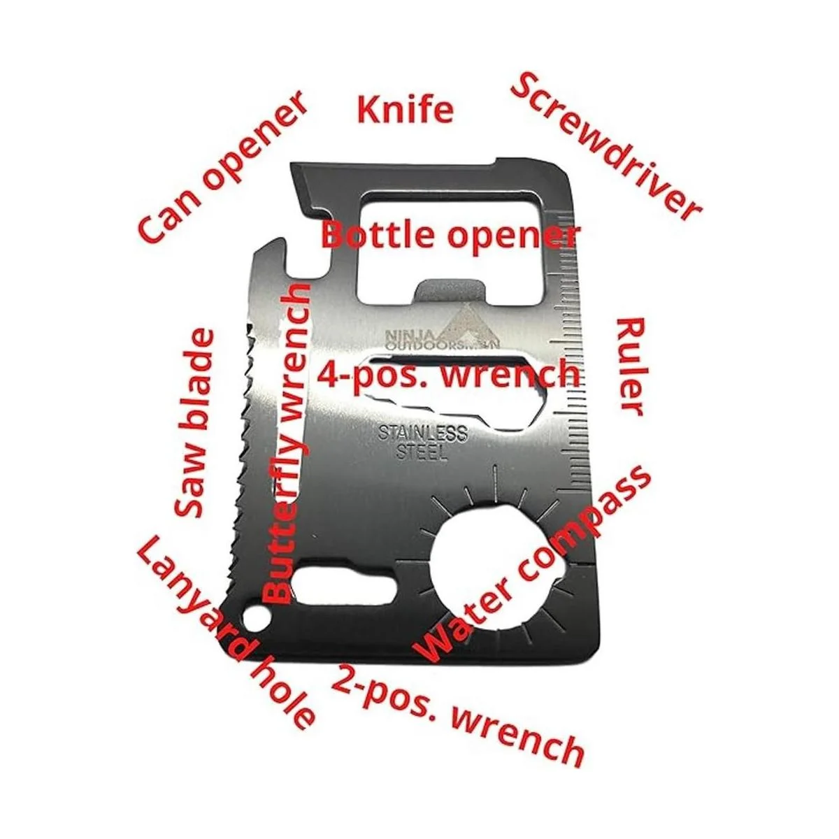 Ninja Outdoorsman herramienta múltiple de supervivencia, del tamaño de tarjeta de crédito, para bolsillo, de acero inoxidable, 11 en 1, Plateado