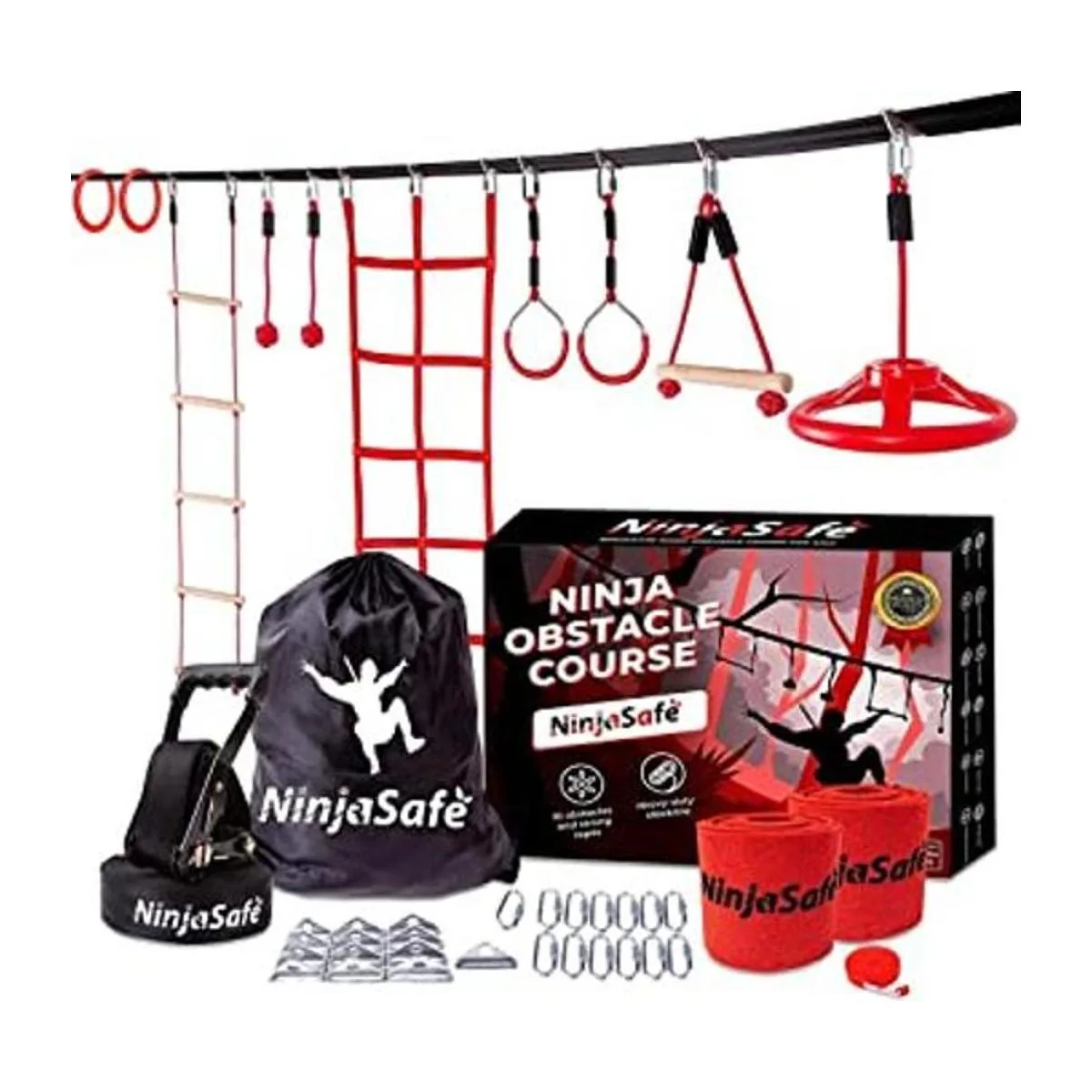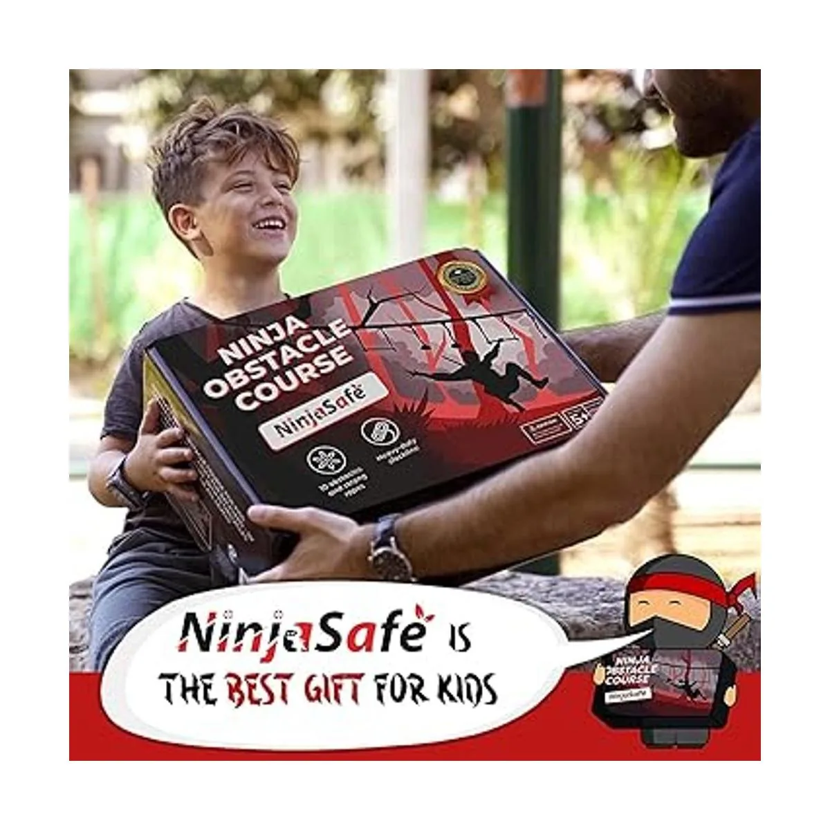 Elección adecuada para niños: deja que tus hijos jueguen al aire libre sin lesiones. El campo de obstáculos NinjaSafe es fácil de instalar y aporta diversión y desafío a la vida de tus hijos.