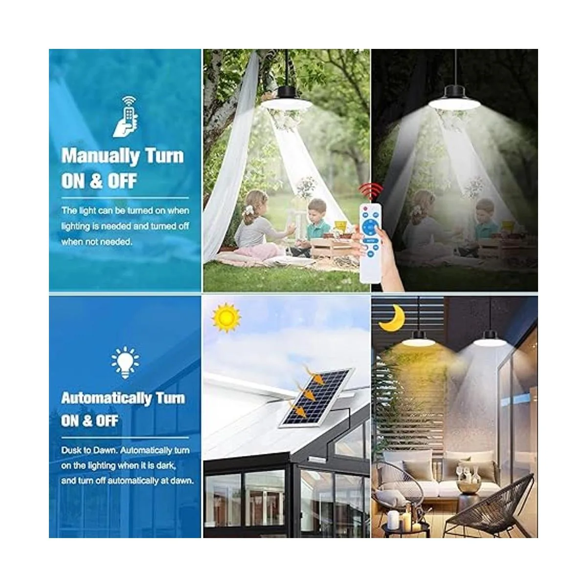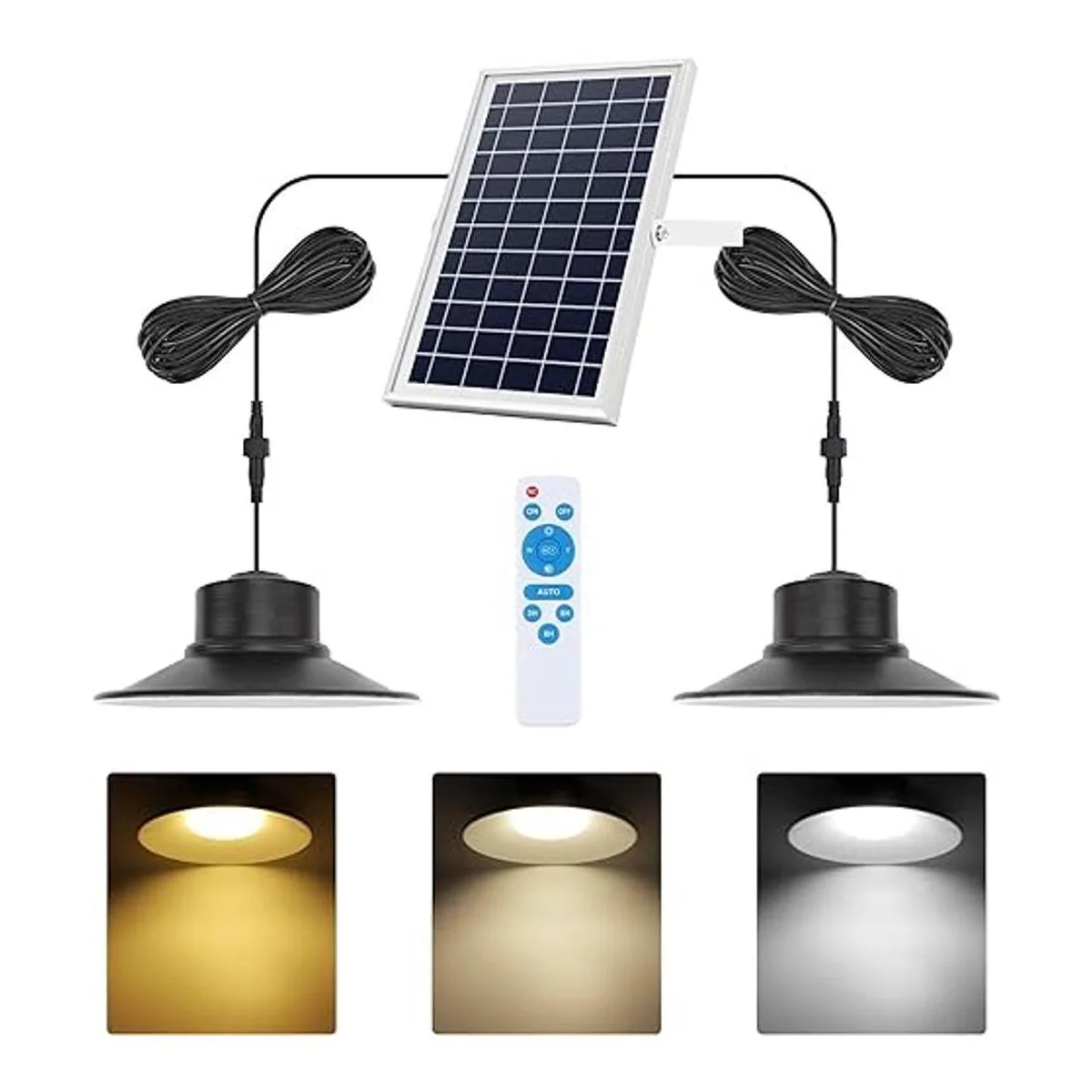 NIORSUN Luces solares LED colgantes solares para exteriores, 5000 K, 4000 K, 3000 K, iluminación regulable con control remoto, cable de 2 x 16.4 pies, impermeable IP65 para interiores, jardín, patio, garaje, campamento paquete de 2