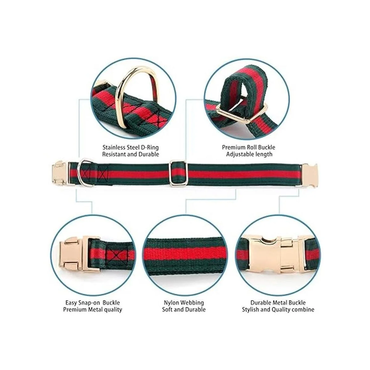 NISIYE Collar de perro de alta calidad, suaves y cómodos collares de perro en estilo de lujo, collar ajustable duradero con hebilla de metal de seguridad para perros medianos, verde rojo, M contorno del cuello 11.817.7 pulgadas, ancho 34 pulgadas