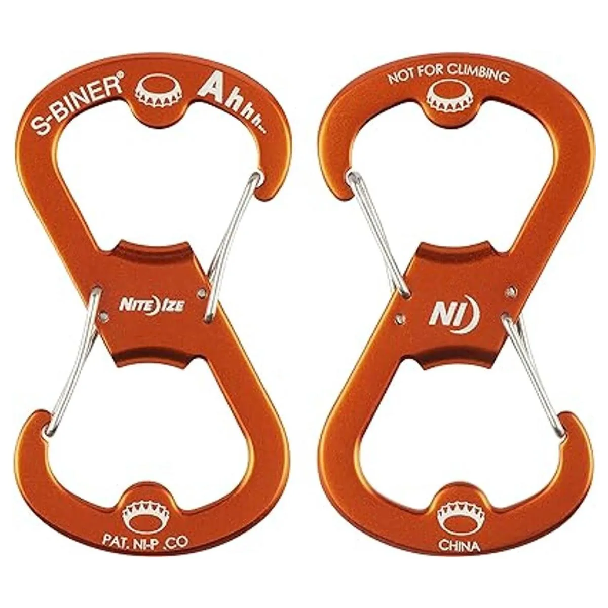 Nite Ize Ahhh Abridor de botellas doble de aluminio, mosquetón doble SBiner con abridor de botellas de doble cara, naranja
