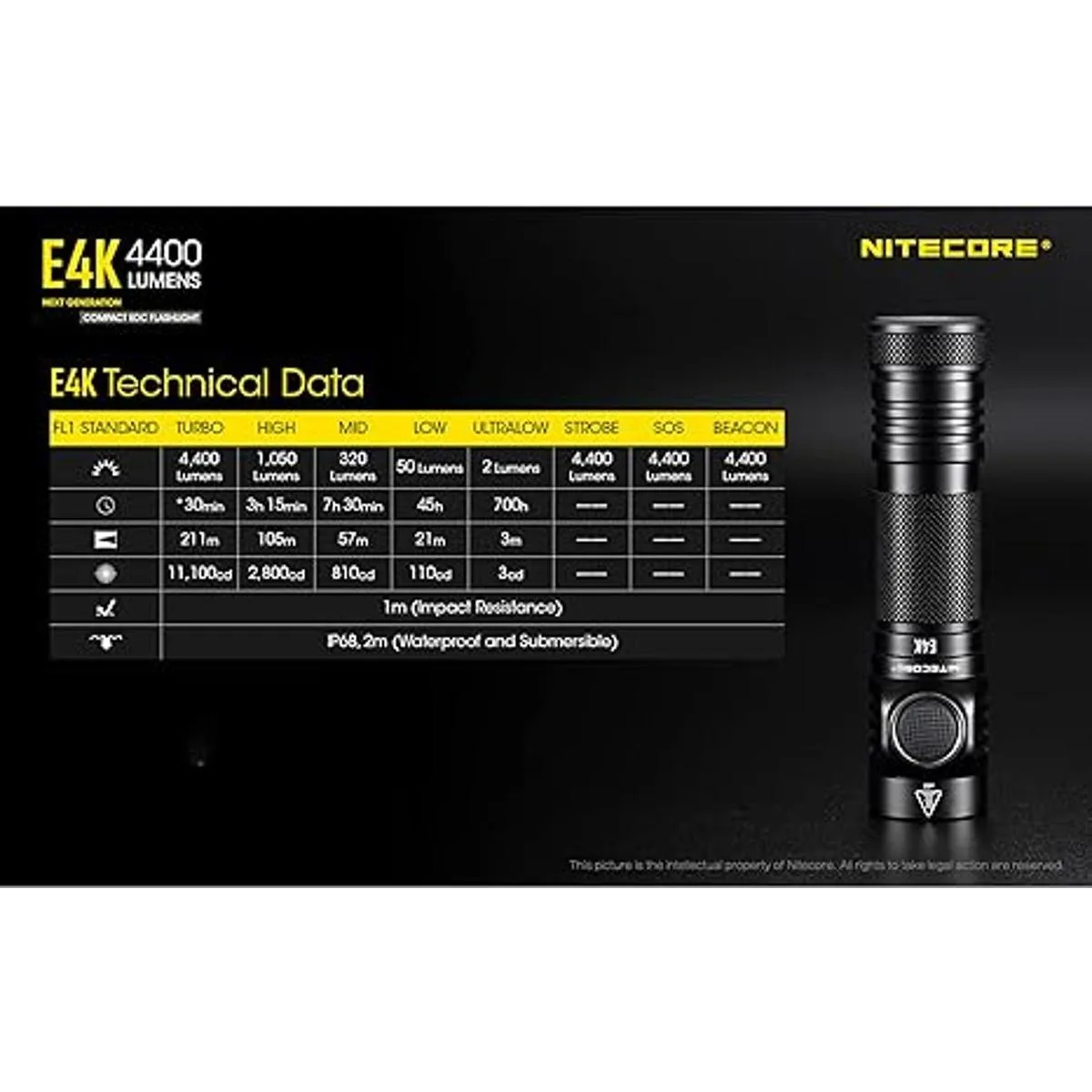 Nitecore E4K Linterna recargable compacta EDC de 4400 lúmenes con organizador LumenTac