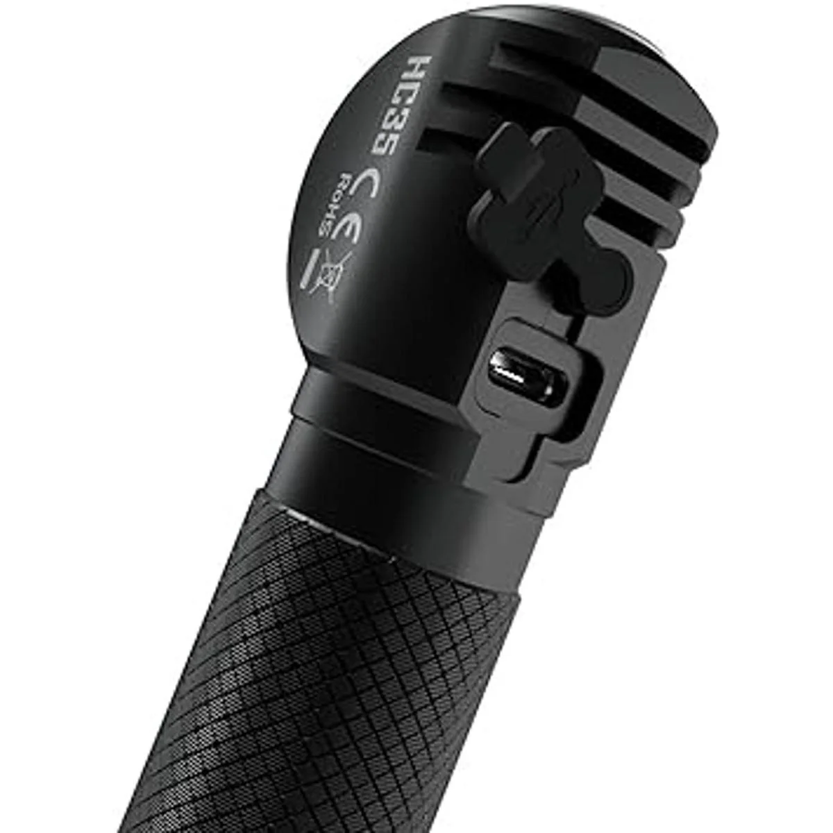 Un solo interruptor controla 5 niveles de brillo y 3 modos especiales. Alimentado por la próxima generación de batería 21700, el HC35 tiene un tiempo de funcionamiento ultra largo de 1.200 horas con uso constante de 50 días en ULTRALOW.