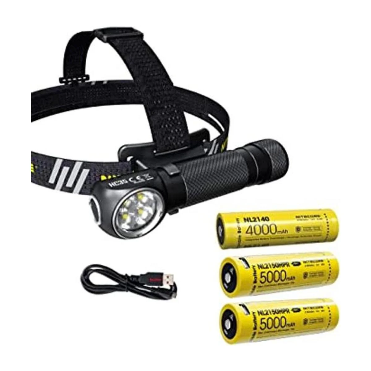 Nitecore HC35 Linterna frontal recargable LED, 4 pilas de iones de litio recargables CREE XPG3 S3 con 2 pilas NL2150HPR y NL2140