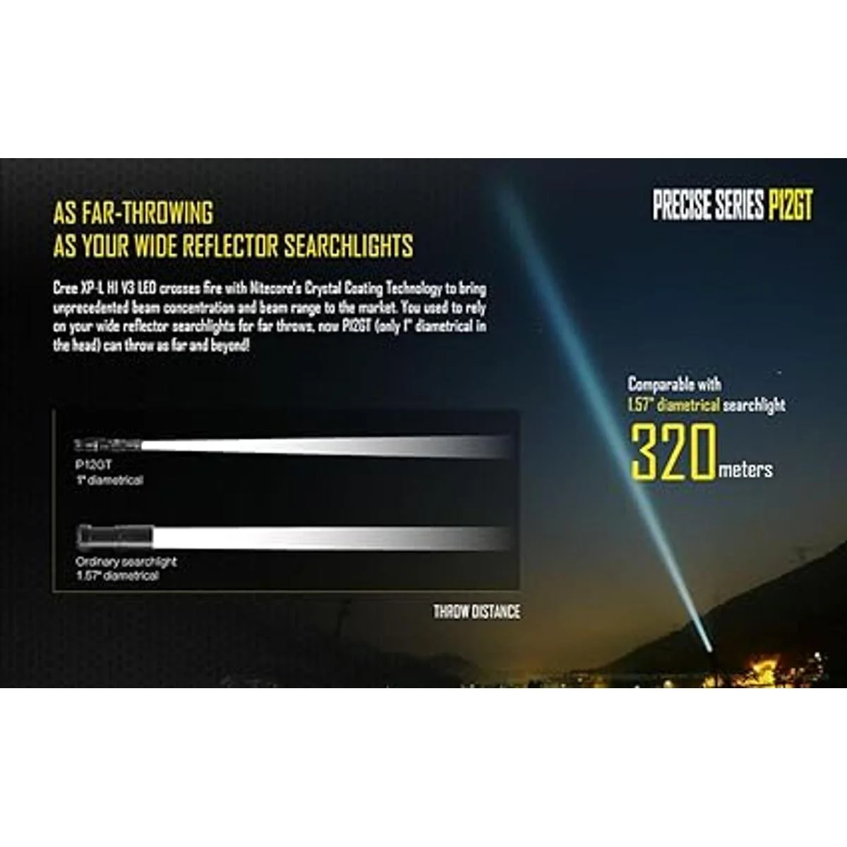 Nitecore P12Gt Flashlight Cree XPL Hi V3 LED, 1000 lm