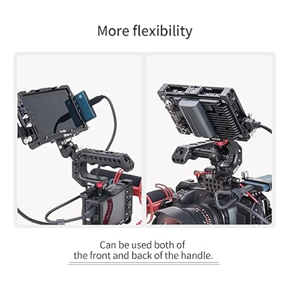 Agujeros de localización ARRI: los agujeros de localización ARRI en la parte delantera del mango se pueden montar con el soporte de monitor Nitze N54F4 de perfil bajo. El soporte para monitor soporta inclinación de 180 y giro de 360 con parada libre. Diseño dinámico, ajusta arbitrariamente el ángulo del monitor que desees.