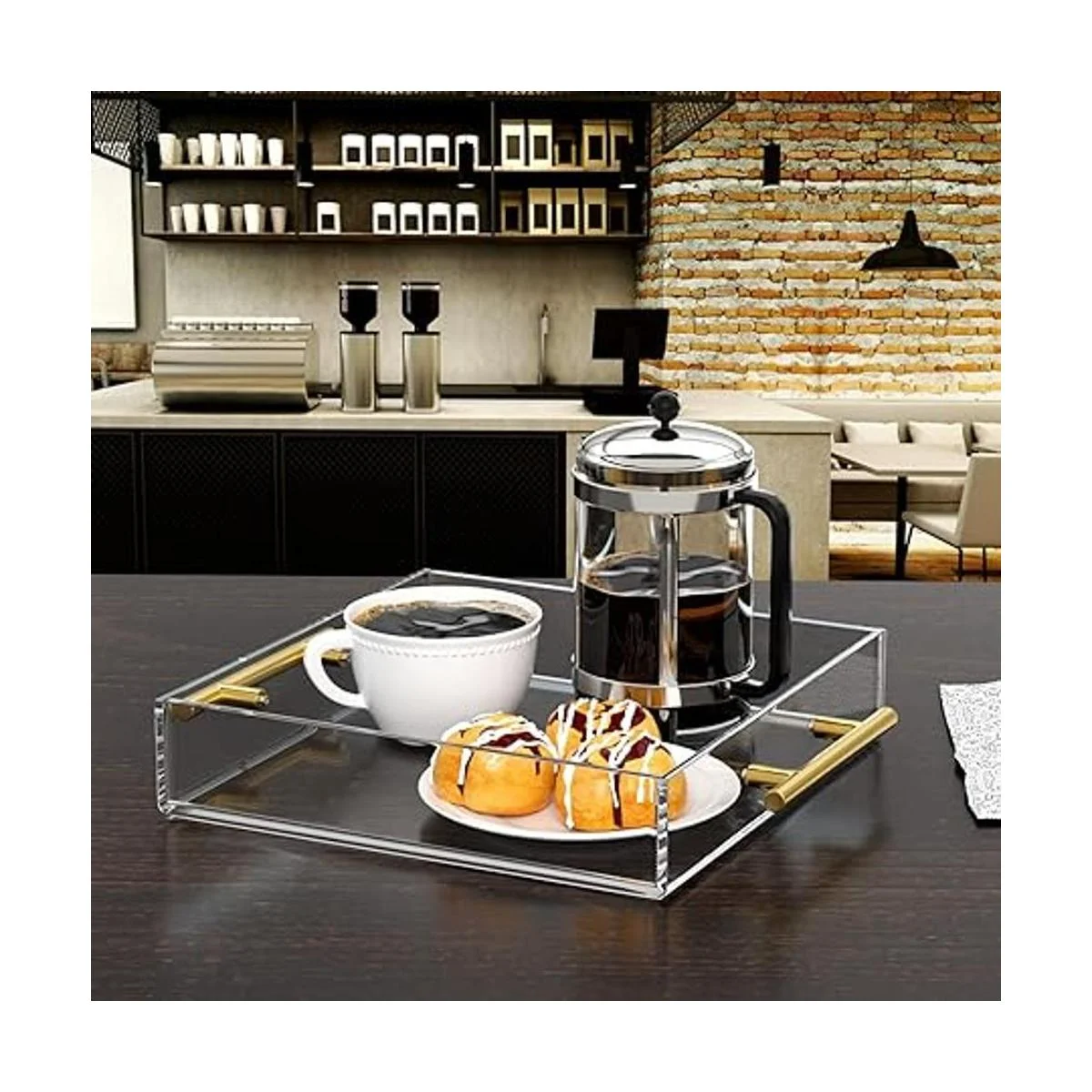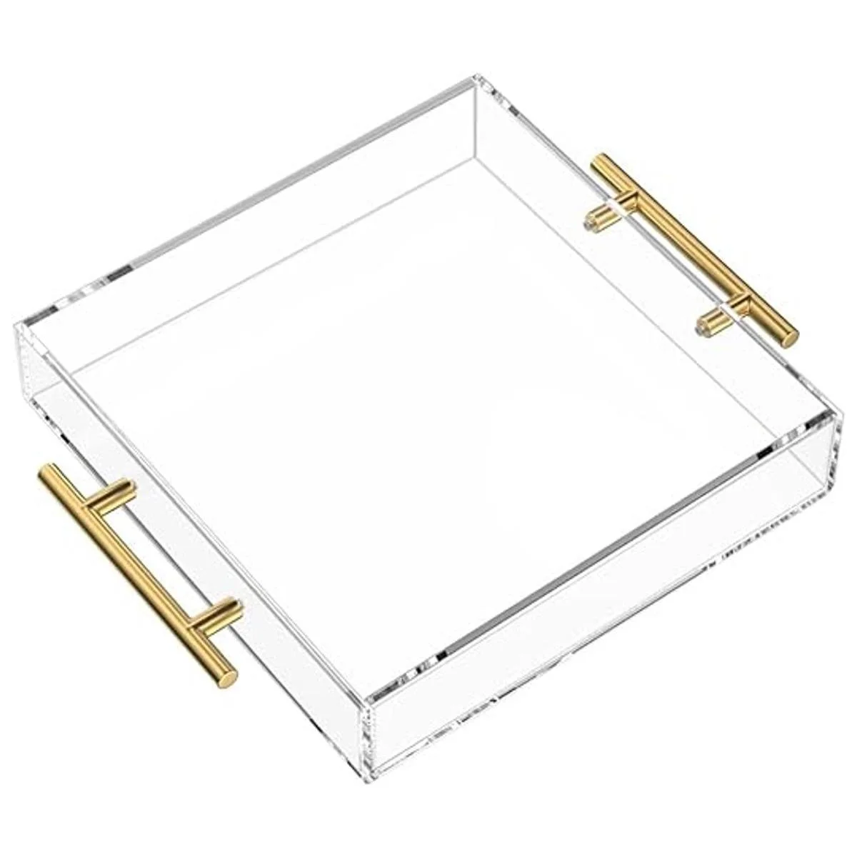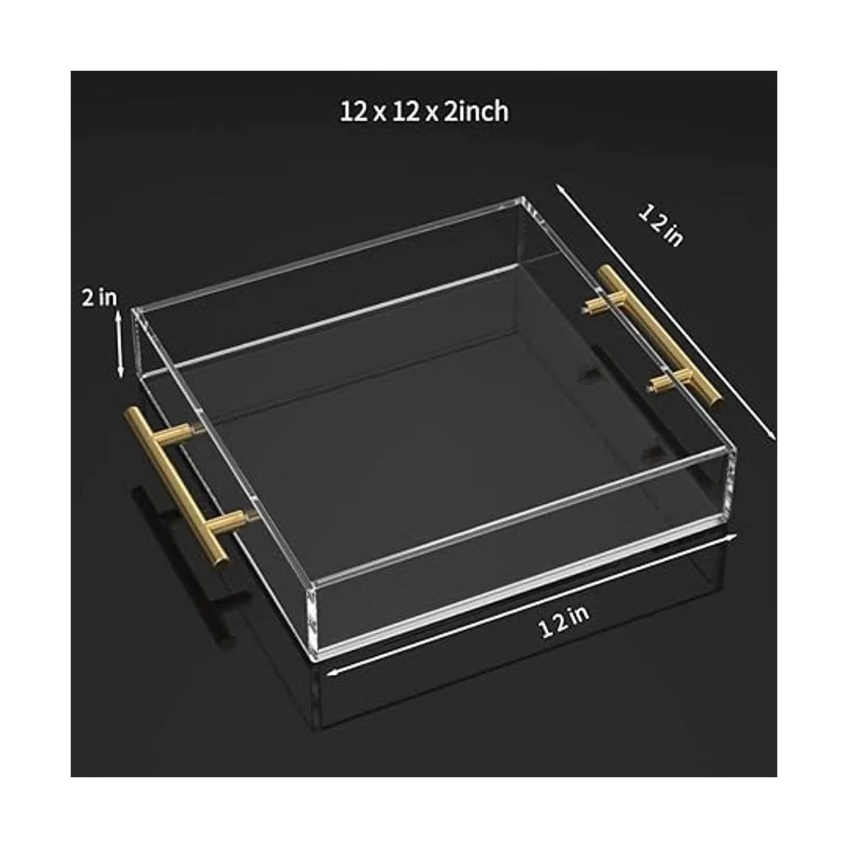 NIUBEE Bandeja transparente para servir de 12 x 12 pulgadas, a prueba de derrames, organizador de bandeja decorativa de acrílico para mesa de centro otomana con asas redondas