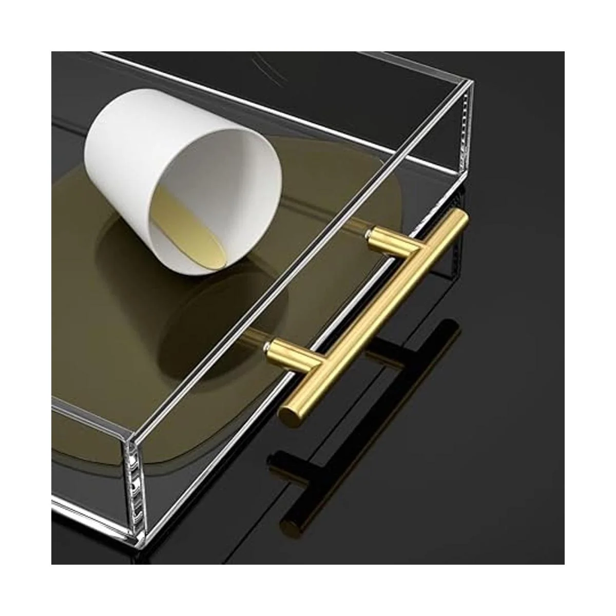 Bandeja decorativa transparente: el aspecto claro de la bandeja ocupa poco espacio visual, hace que sea fácil colocar controles remotos y revistas en la mesa de café, mostrar artículos de tocador en el tocador, y mantener las cosas organizadas y fácilmente recuperadas.