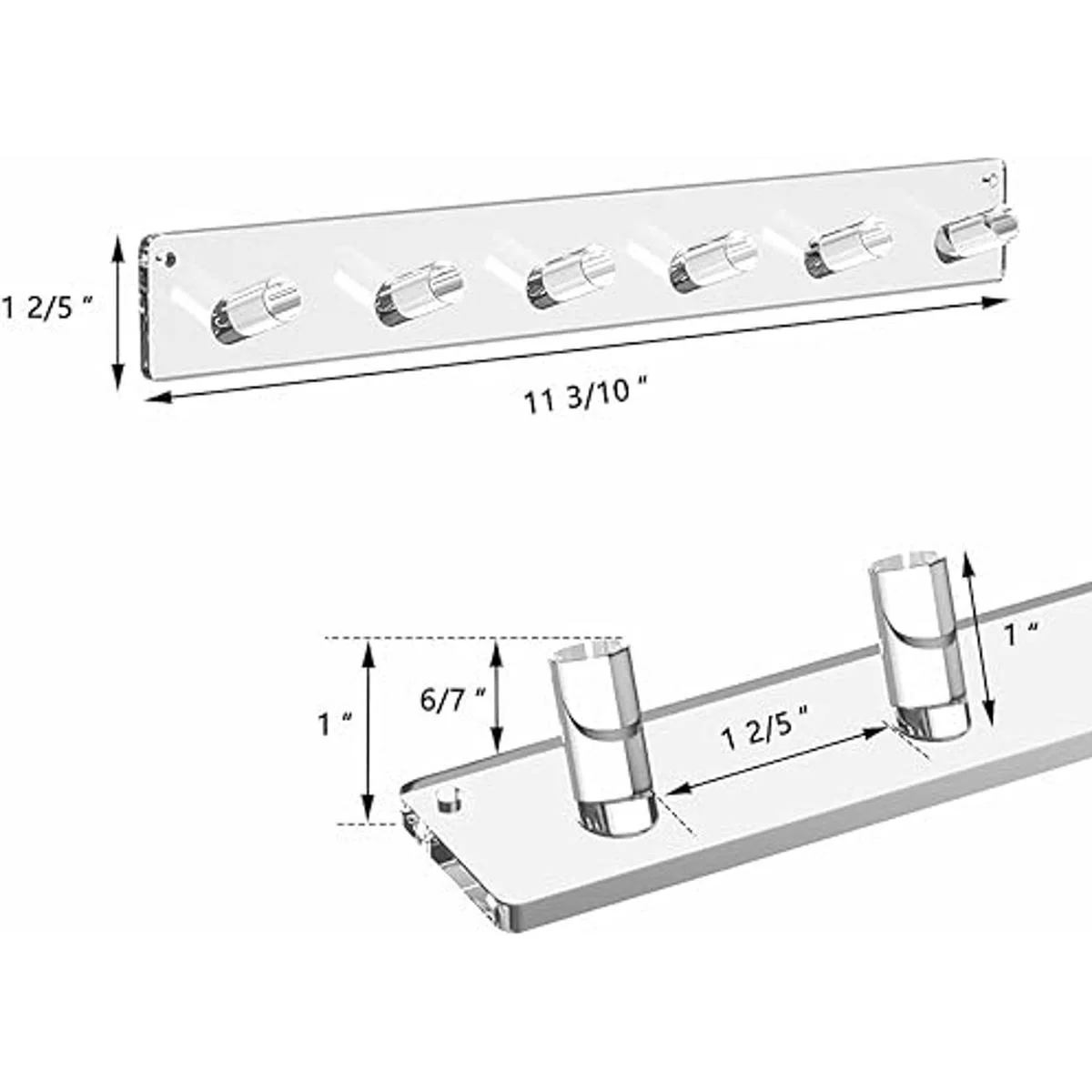Paquete de 2 soportes para collar: las dimensiones totales son de 11.3 pulgadas de largo por 1.4 pulgadas de alto, cada soporte para collar tiene 6 pomos individuales, para un total de 12 ganchos. Muestra tus collares y joyas favoritas.