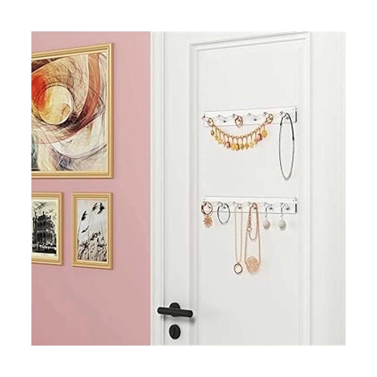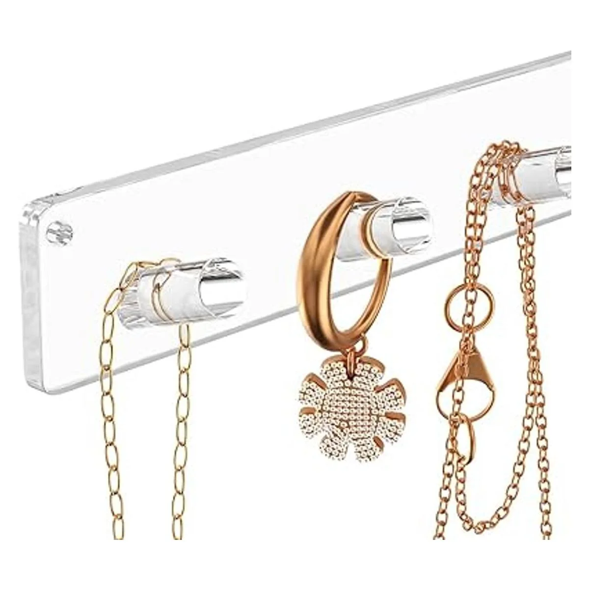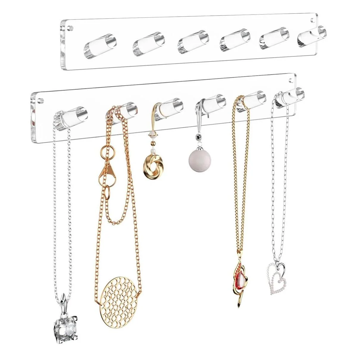 NIUBEE Organizador de soporte de joyería montado en la pared, paquete de 2 ganchos de acrílico para collares, pulseras, anillos, brazaletes, estante de exhibición, el mejor regalo para niñas y mujeres