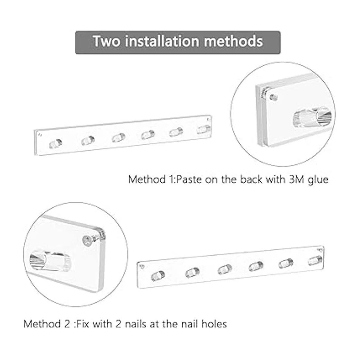 Fácil de instalar: la instalación de este organizador de collares montado en la pared es simple. Se puede fijar con 2 clavos pequeños o cintas 3M. Cada estante incluye dos clavos y una cinta transparente 3M, puedes elegir el método de instalación que sea más conveniente para ti.