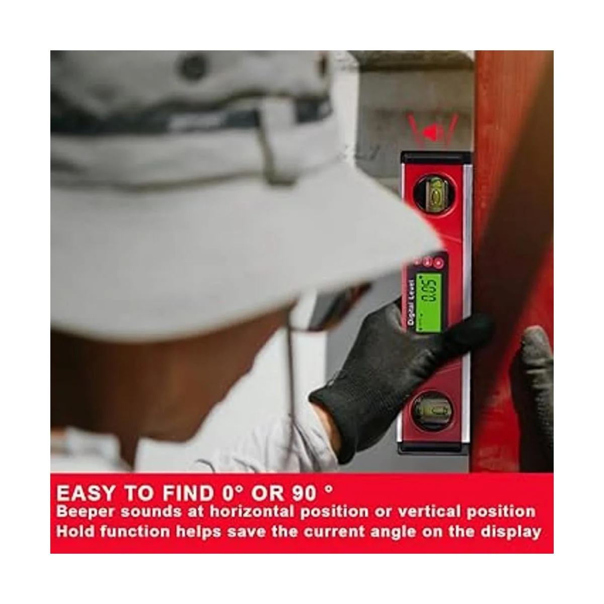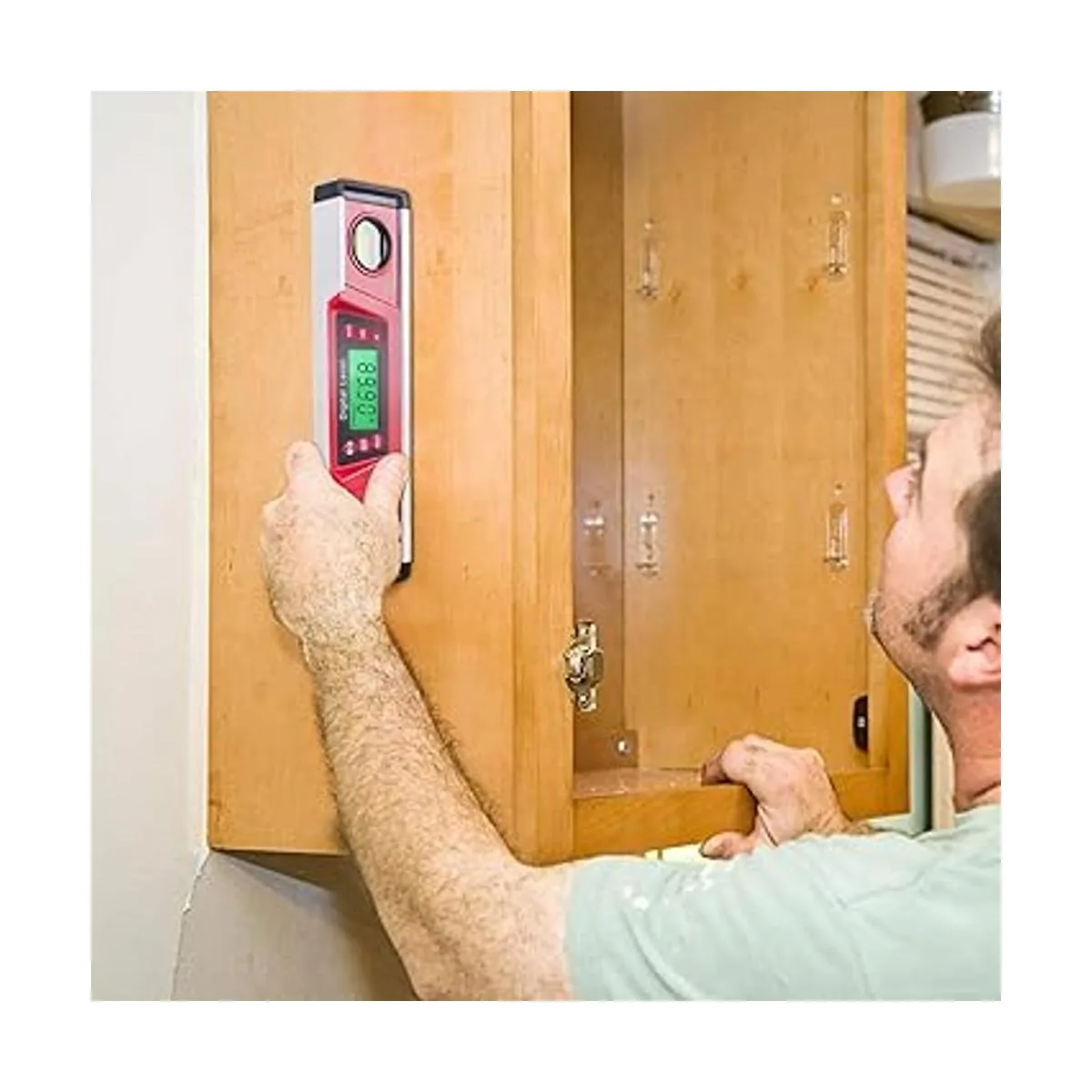 Fácil de leer: la gran pantalla LED verde brillante proporciona una mejor visibilidad, súper fácil de leer en condiciones de iluminación difíciles. El valor de visualización se invierte automáticamente cuando el nivel electrónico está boca abajo. El nivel puede almacenar 8 juegos de valores, libera tus manos.