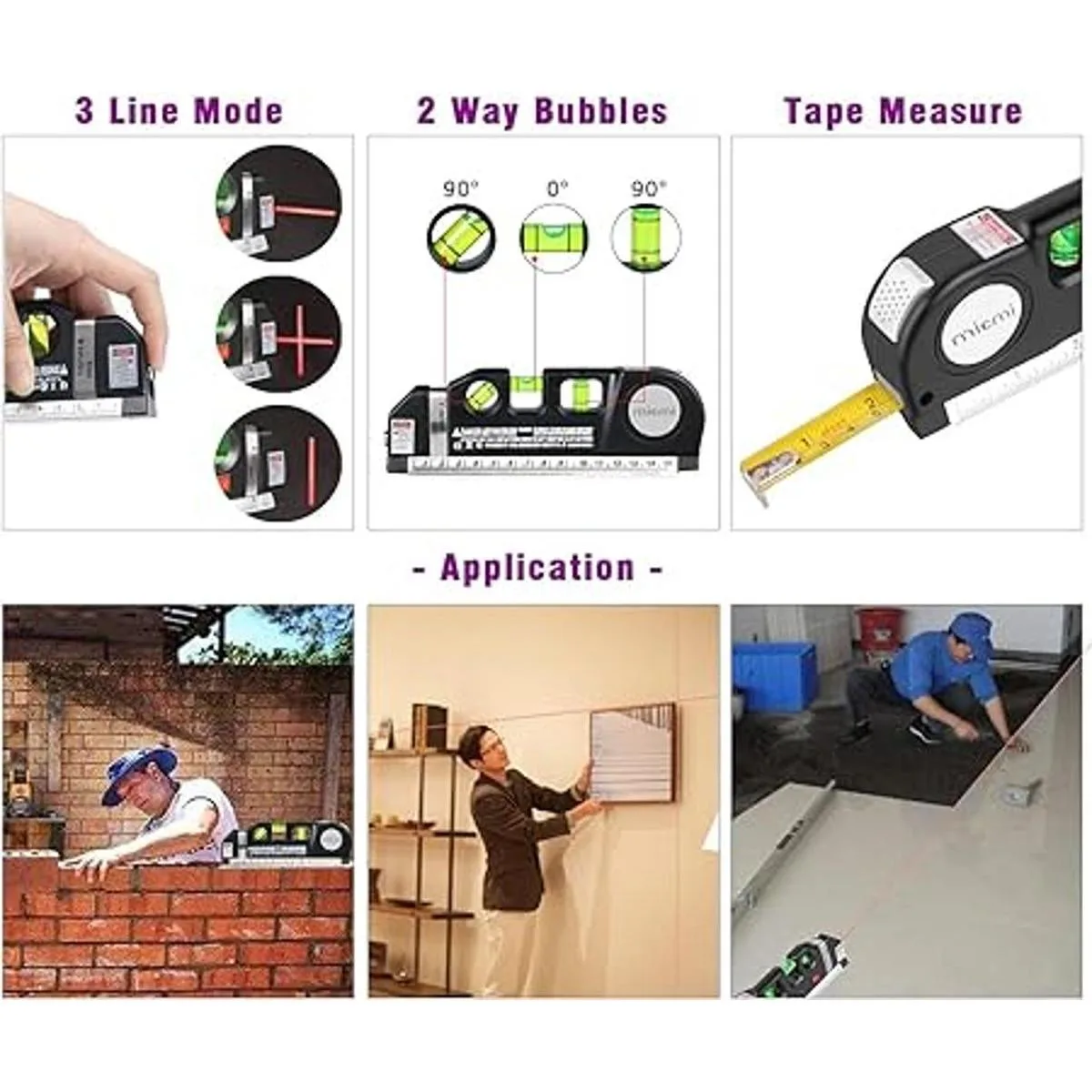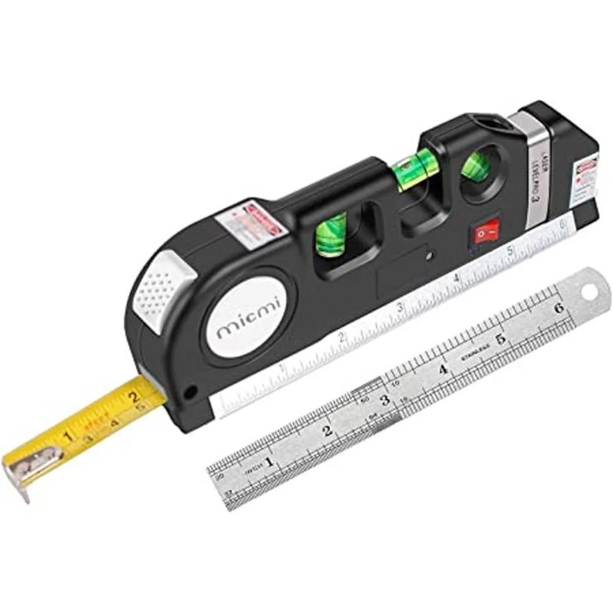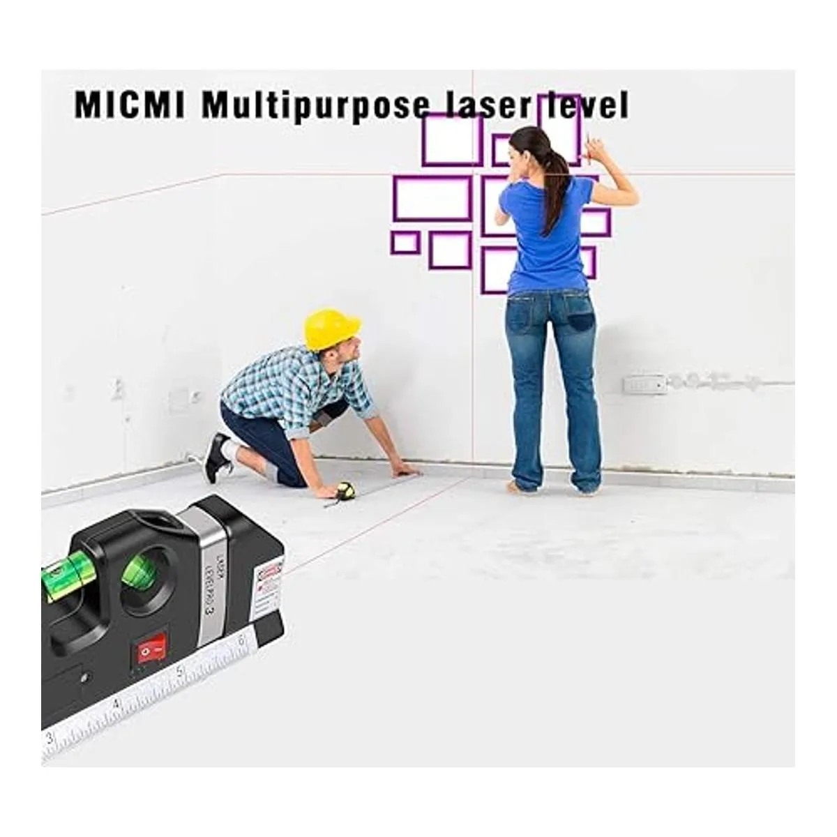 Nivel láser, línea de cinta métrica láser multiusos de 8 pies regla de cinta métrica ajustada estándar y métrica, actualiza las baterías MICMI
