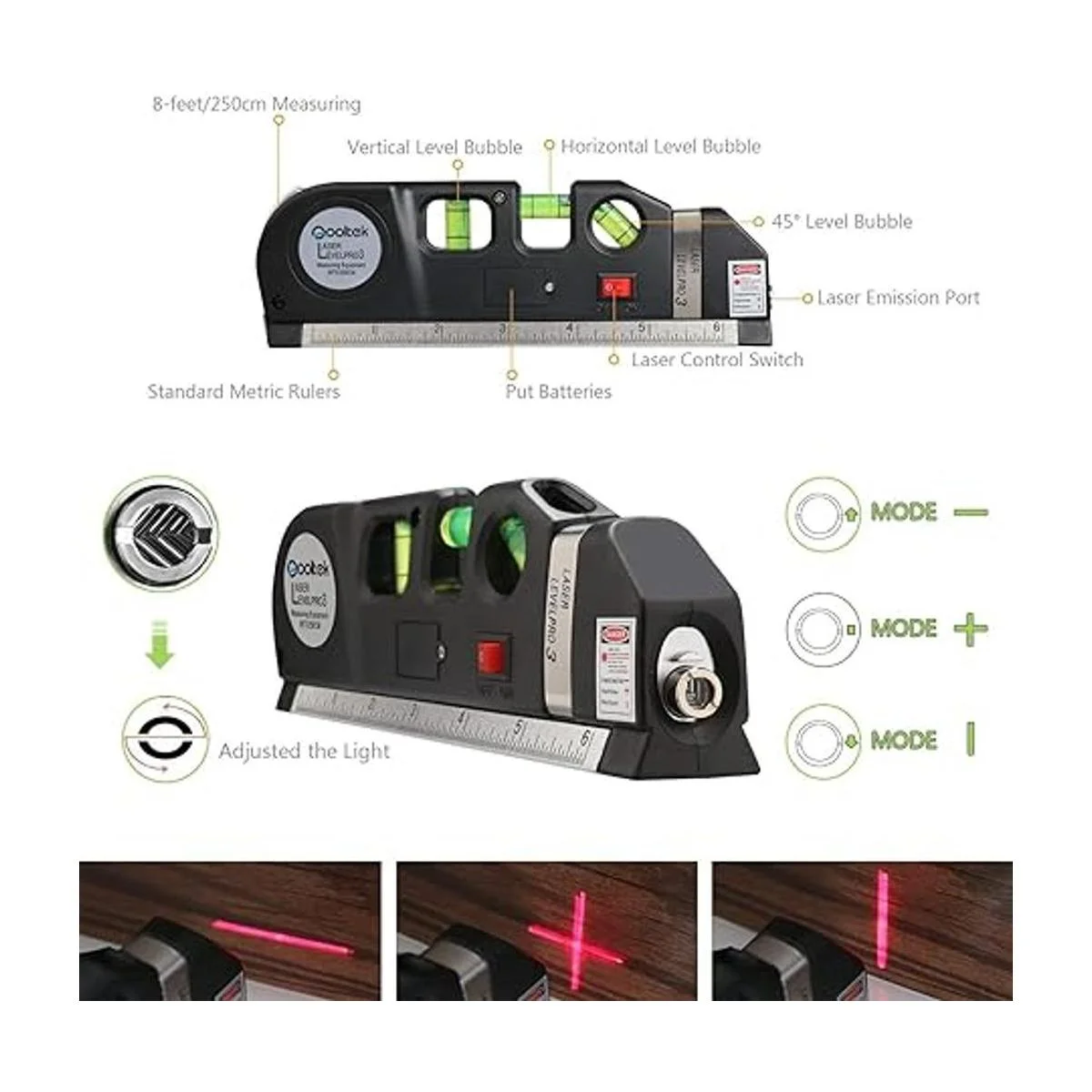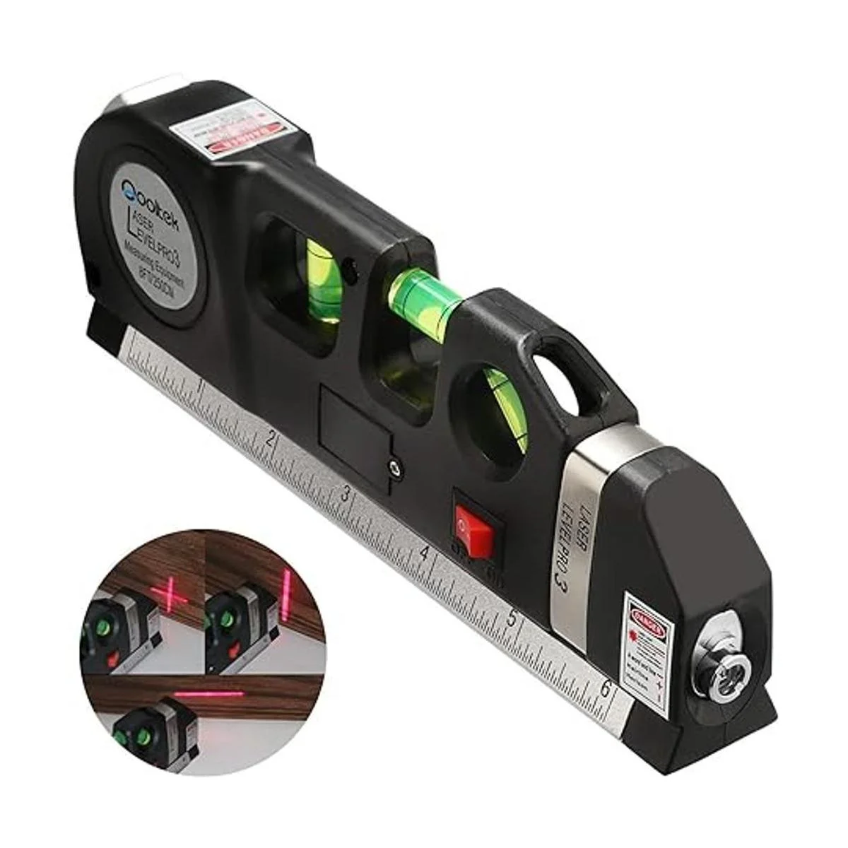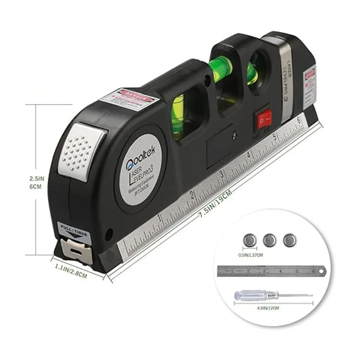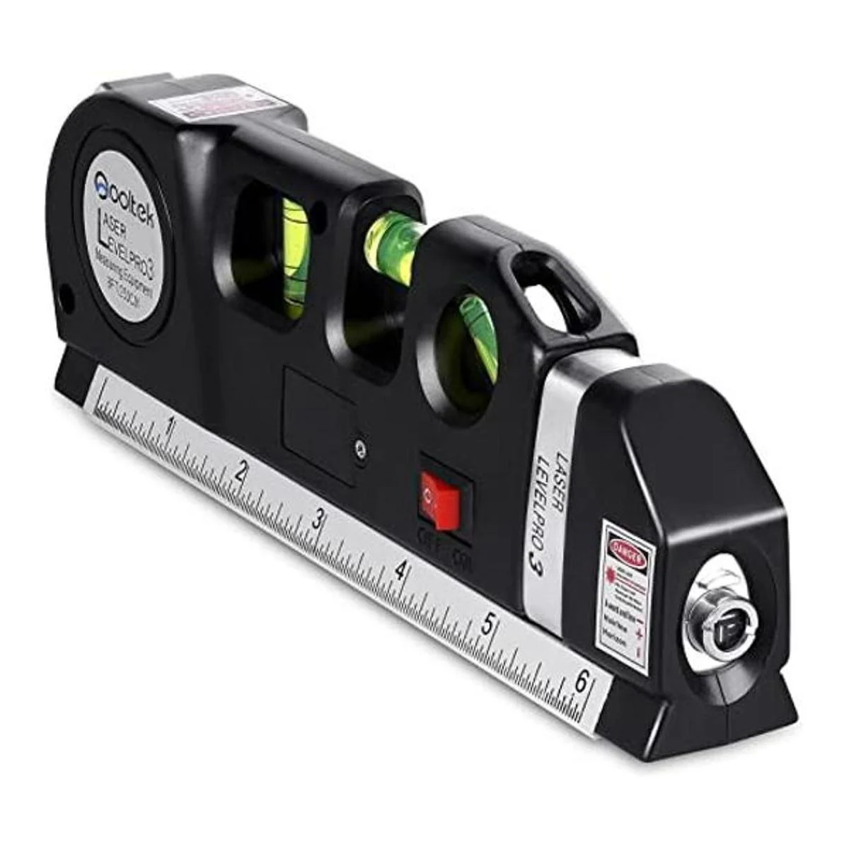 Nivel láser multipropósito con cinta medidora con 8 pies marca Qooltek, cinta y regla de medición ajustadas al sistema métrico y al sistema estándar