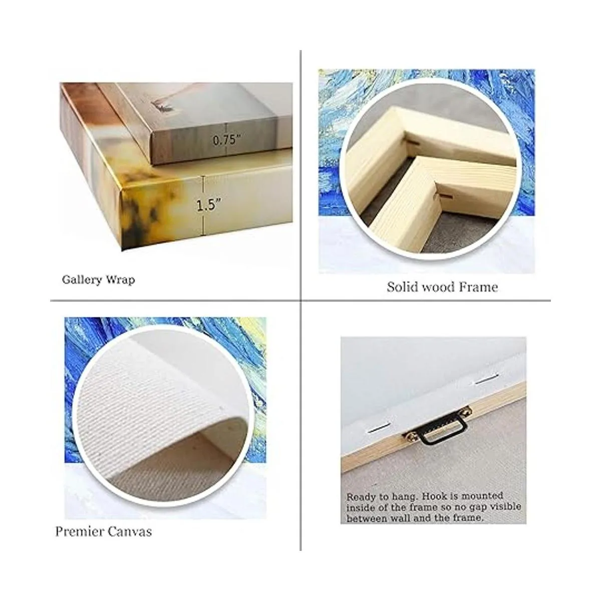 No es una pintura a mano, sino una reproducción/impresión en lienzo de primera calidad, envuelto en galería y estirado sobre marco de madera real no MDF. Dado que cada pantalla de computadora es diferente, el color puede ser un poco diferente en tu pantalla. 100 garantía de reembolso.
