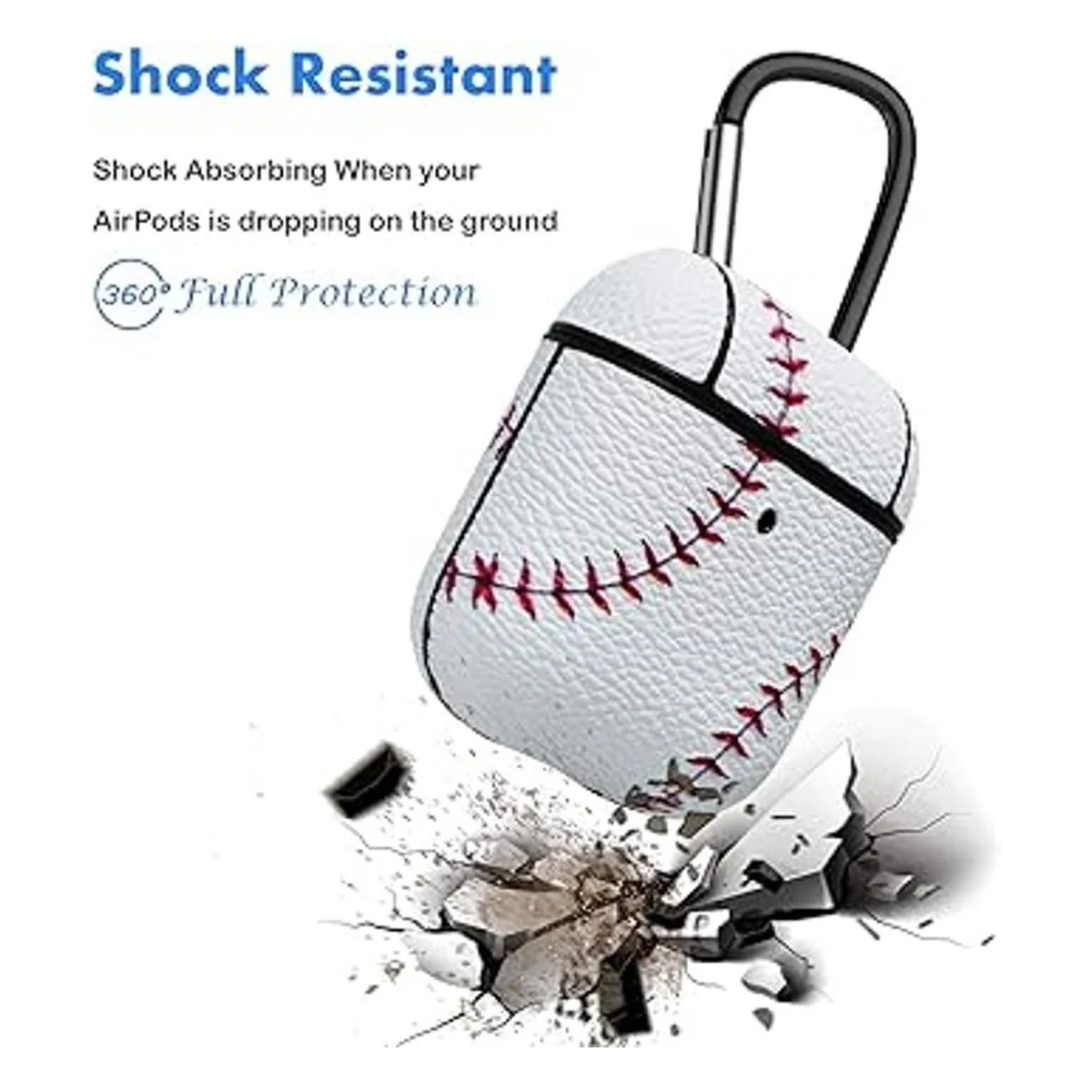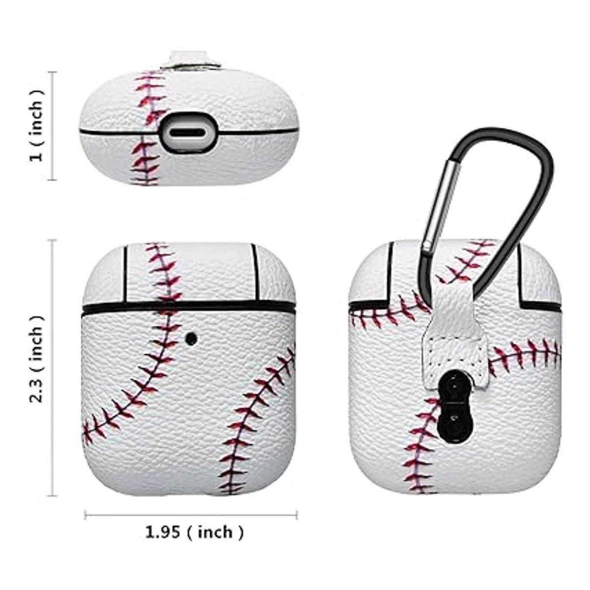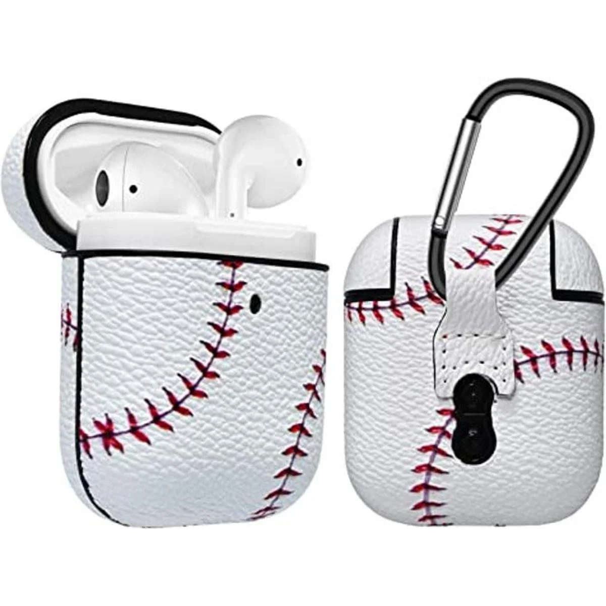 Njjex Funda para AirPods, funda rígida de piel sintética, funda protectora portátil a prueba de golpes, accesorios para auriculares con mosquetónllavero compatible con Apple AirPods 1Airpods 2 funda de carga béisbol