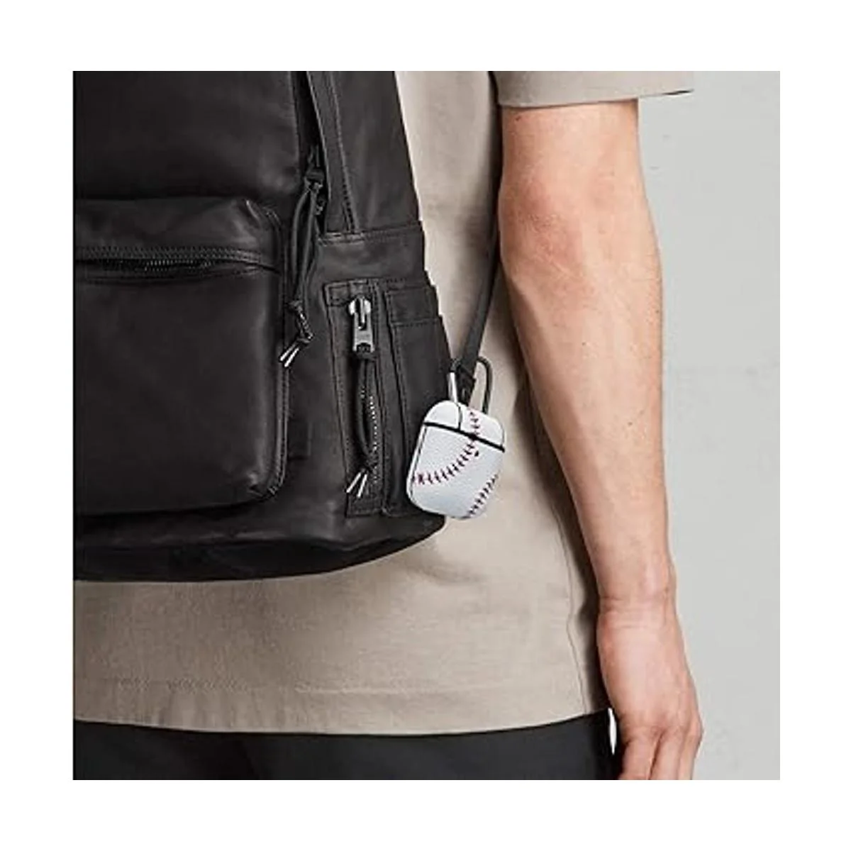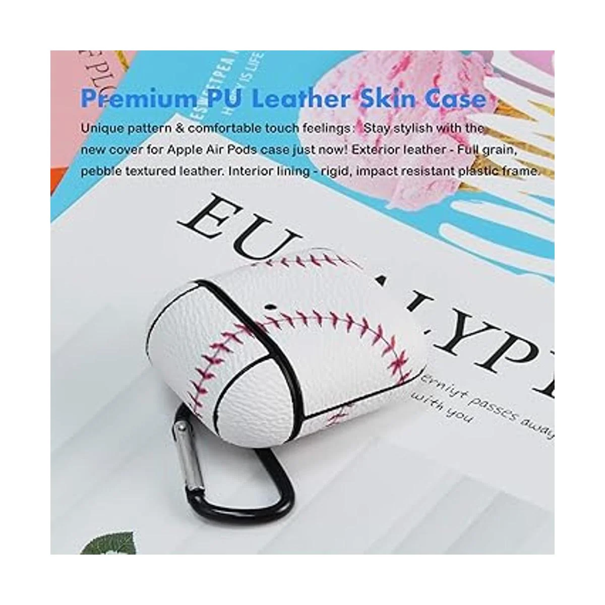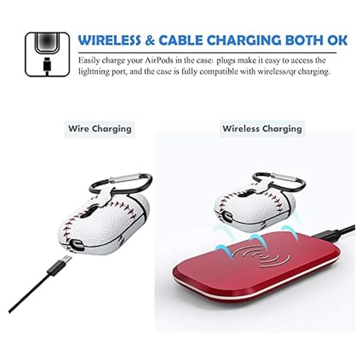 Njjex Funda para AirPods, funda rígida de piel sintética, funda protectora portátil a prueba de golpes, accesorios para auriculares con mosquetónllavero compatible con Apple AirPods 1Airpods 2 funda de carga béisbol