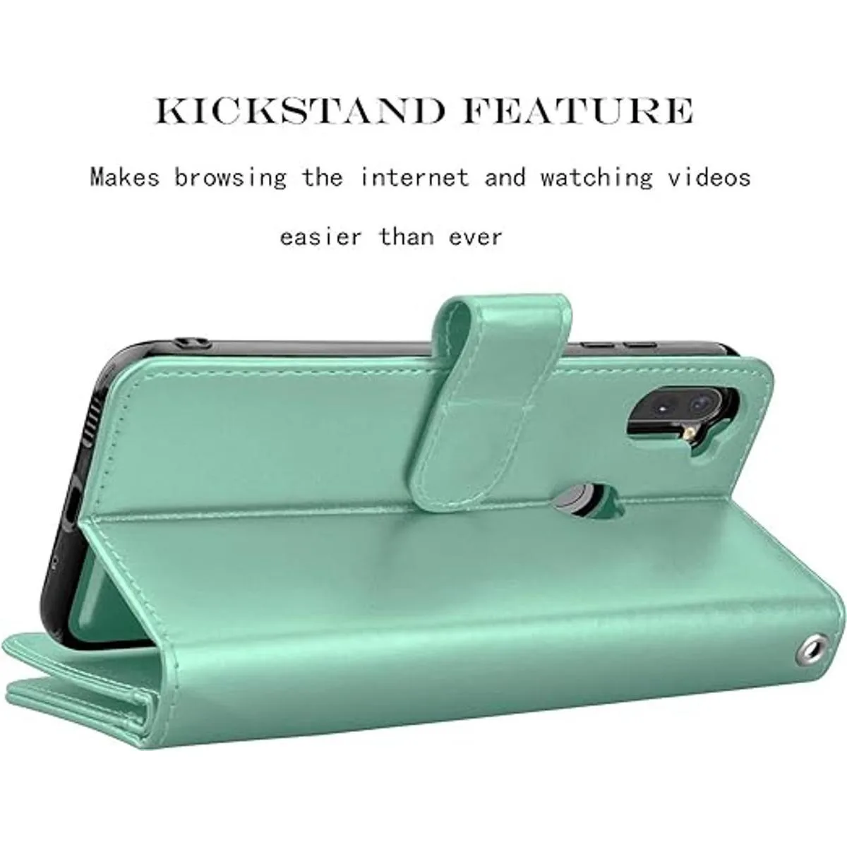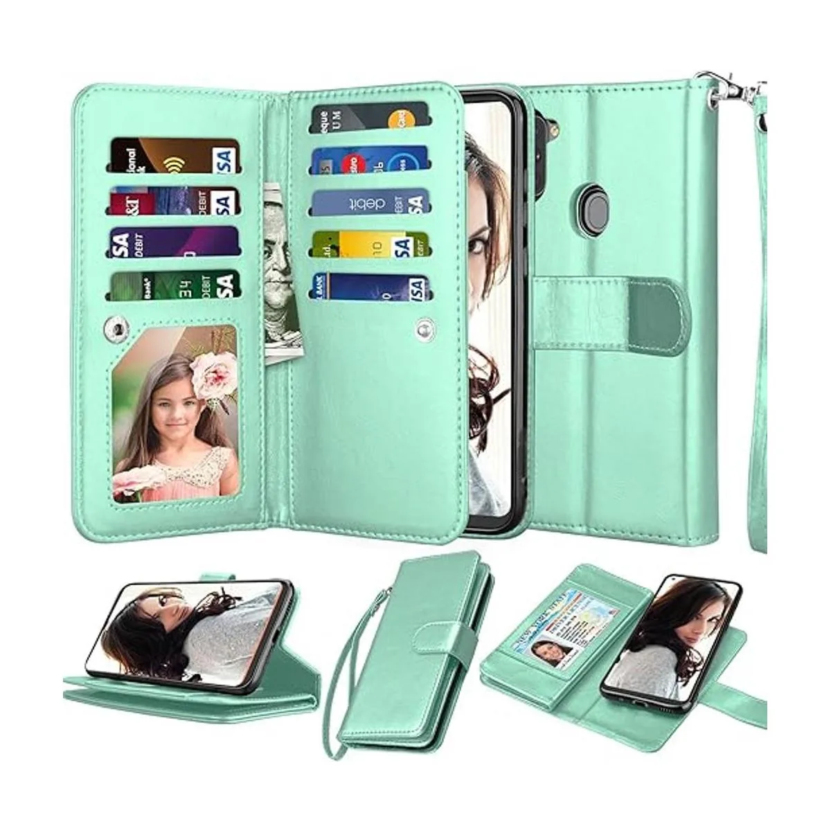 Njjex Funda para Galaxy A11, para Samsung Galaxy A11, 9 ranuras para tarjetas, piel sintética, tarjetero, tarjetero, cierre magnético, función atril, correa para Samsung A11 2020, color turquesa