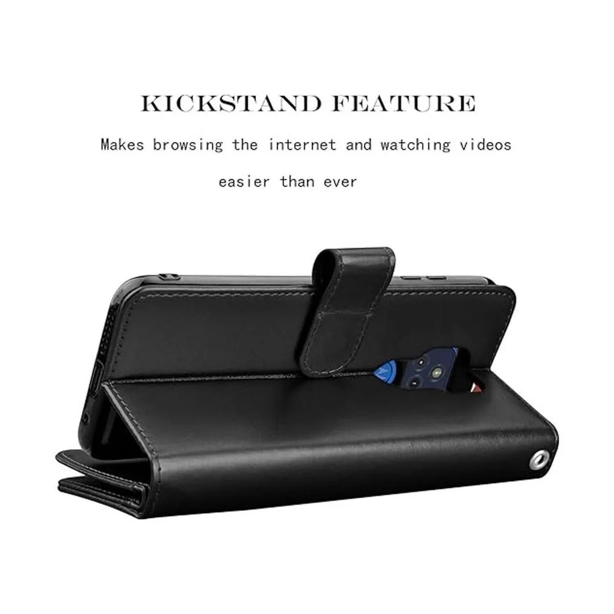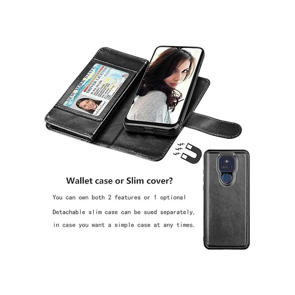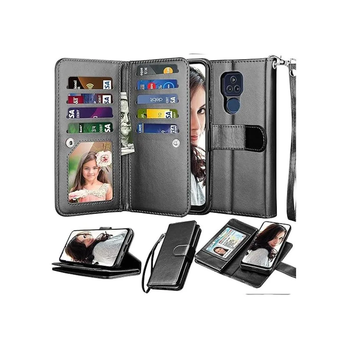 Njjex Funda para Moto G Play 2021, para Motorola Moto G Play 2021, funda tipo cartera, 9 ranuras para tarjetas de piel sintética, soporte de crédito de identificación, funda magnética para teléfono y cordón negro
