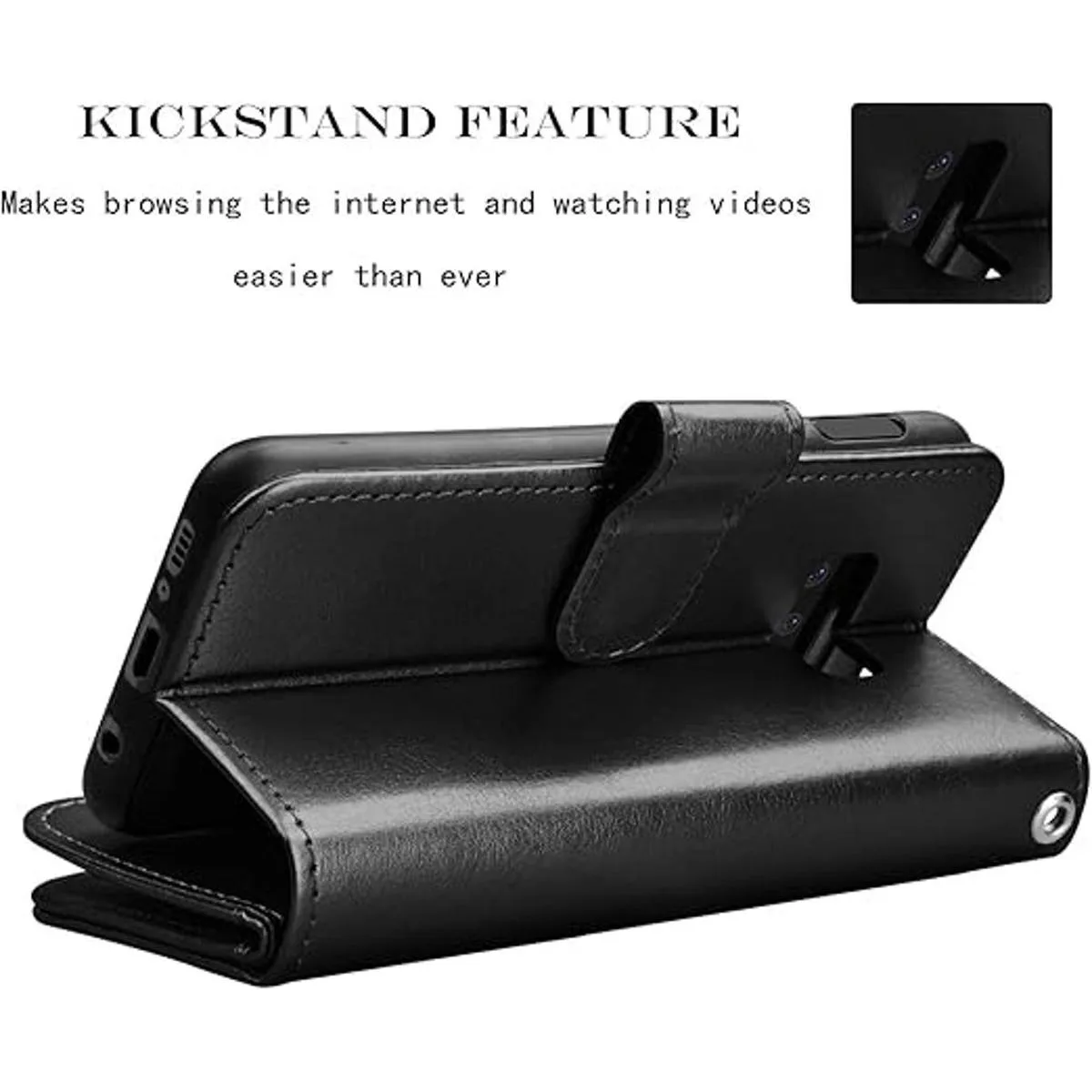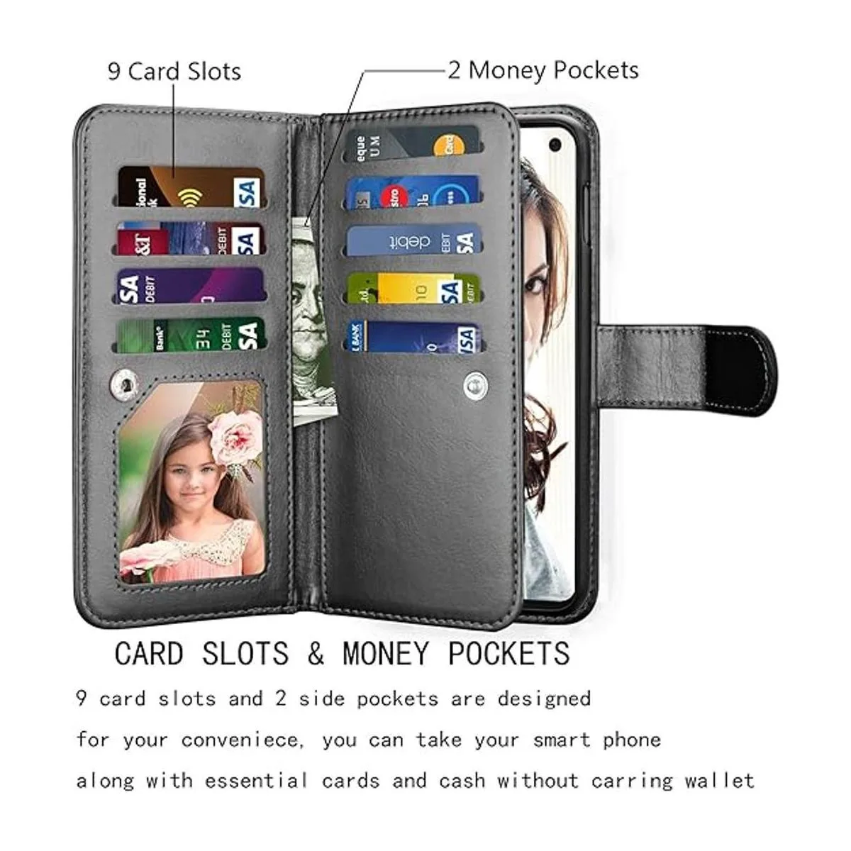 Njjex Funda tipo cartera para Galaxy S10E, funda para Galaxy S10E de 5.8 pulgadas, piel sintética 9 ranuras para tarjetas soporte de crédito con tapa desmontable soporte de pate funda magnética para teléfono y correa de muñeca para Samsung S10E negro
